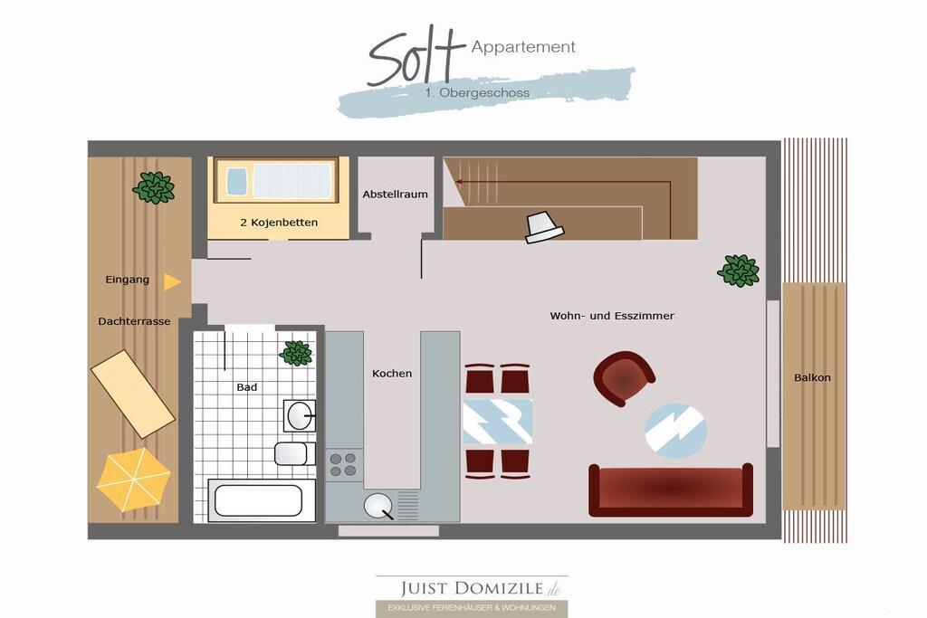 Sie wohnen in unseren rauchfreien Maisonette- Appartements über der Geschäftspassage mit allem Komfort, den Sie sich im Urlaub wünschen. Das Wohnzimmer unten ist Flachbildschirm-TV ausgestattet. Im Schlafzimmer unterm Spitzdach steht ebenfalls ein Fernseher. Ost- und Westfenster lassen Morgen- und Abendsonne herein. Außerdem gibt es: Eine komplette Studioküche mit Mikrowelle, Wasserkocher, Kaffeemaschine, Toaster und Spülmaschine. Bad mit Dusche, WC. Zwei zusätzliche ostfriesische Schlafkojen in Form eines Etagenbettes. Waschmaschine, Trockner, Bügeleisen und Bügelbrett im Gemeinschaftswaschraum. Bettwäsche und Handtücher inklusive. (Babybett, und Hochstühlchen kostenlos) Kürzere Aufenthalte und Rabatte sind in freien Restzeiträumen oder bei kurzfristigen Anfragen möglich.
