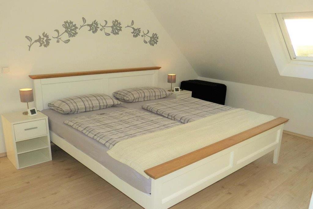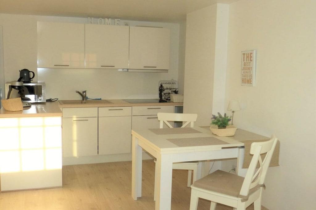 Denne lyse ferieleiligheten ble renovert i 2022, er komfortabelt møblert, egnet for allergikere, og tilbyr en fantastisk utsikt over hagen, fyret og Vadehavet. Leiligheten har en stue med en kjøkkenkrok av høy kvalitet, spiseplass og en komfortabel sovesofa for en tredje person. Stuen vender mot sør, og du kan nyte fantastisk havutsikt fra sofaen. Soverommet, i tillegg til dobbeltsengen (1,8 x 2 m), tilbyr god plass til en barneseng eller en ekstra madrass (inkludert). Det moderne badet er tilgjengelig via et separat garderoberom. Vaskemaskin og tørketrommel er tilgjengelig for gjester i kjelleren i bygningen mot et gebyr.