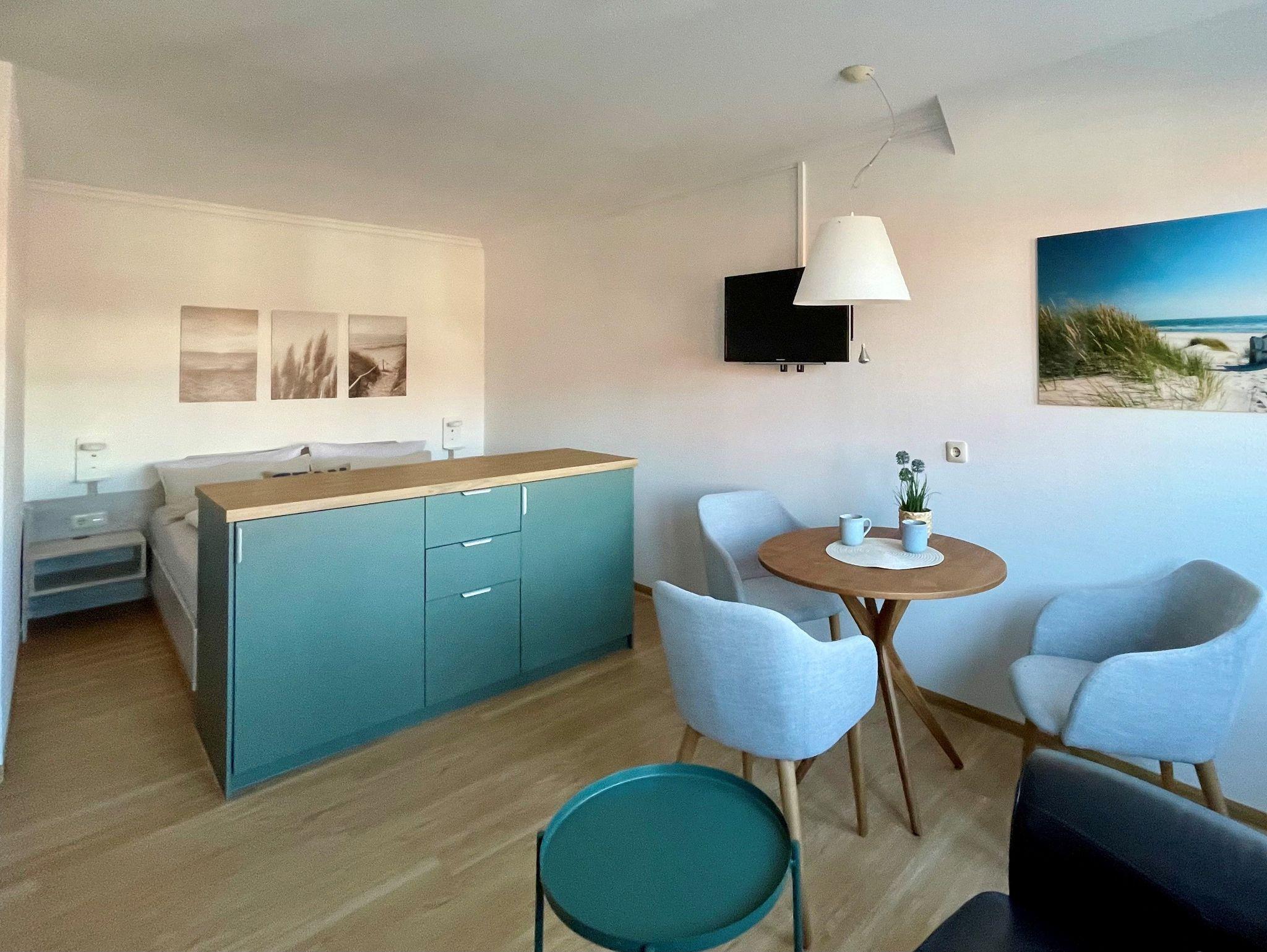 Gemütliche Nichtraucher-Ferienwohnung für 2-3 Personen mit einem Schlafzimmer und einem Wohn-Schlafzimmer in der Inselresidenz Strandburg.