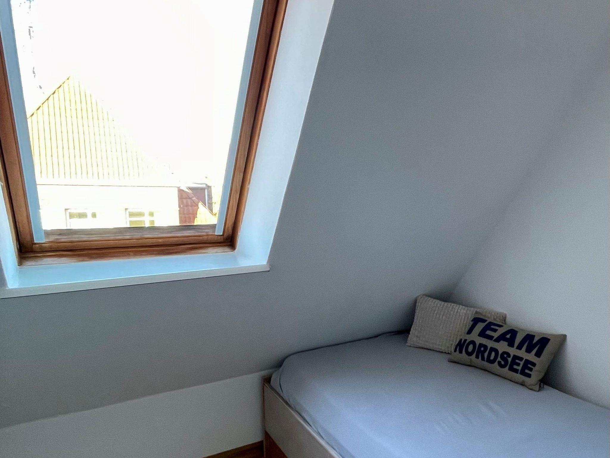 Das separate Schlafzimmer ist mit einem Einzelbett ausgestattet.