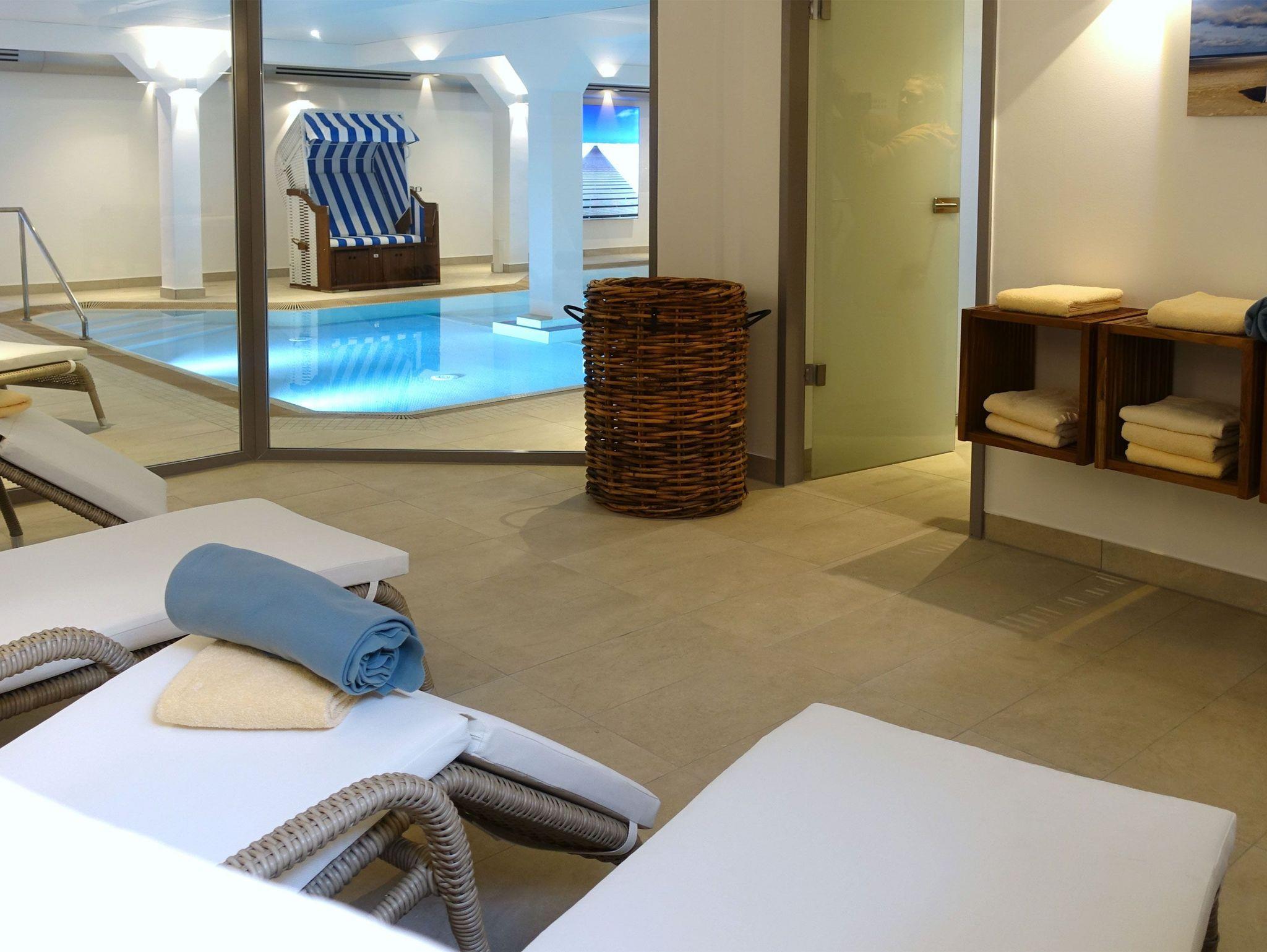 Der schöne Schwimmbadbereich mit Sauna ist kostenfrei.