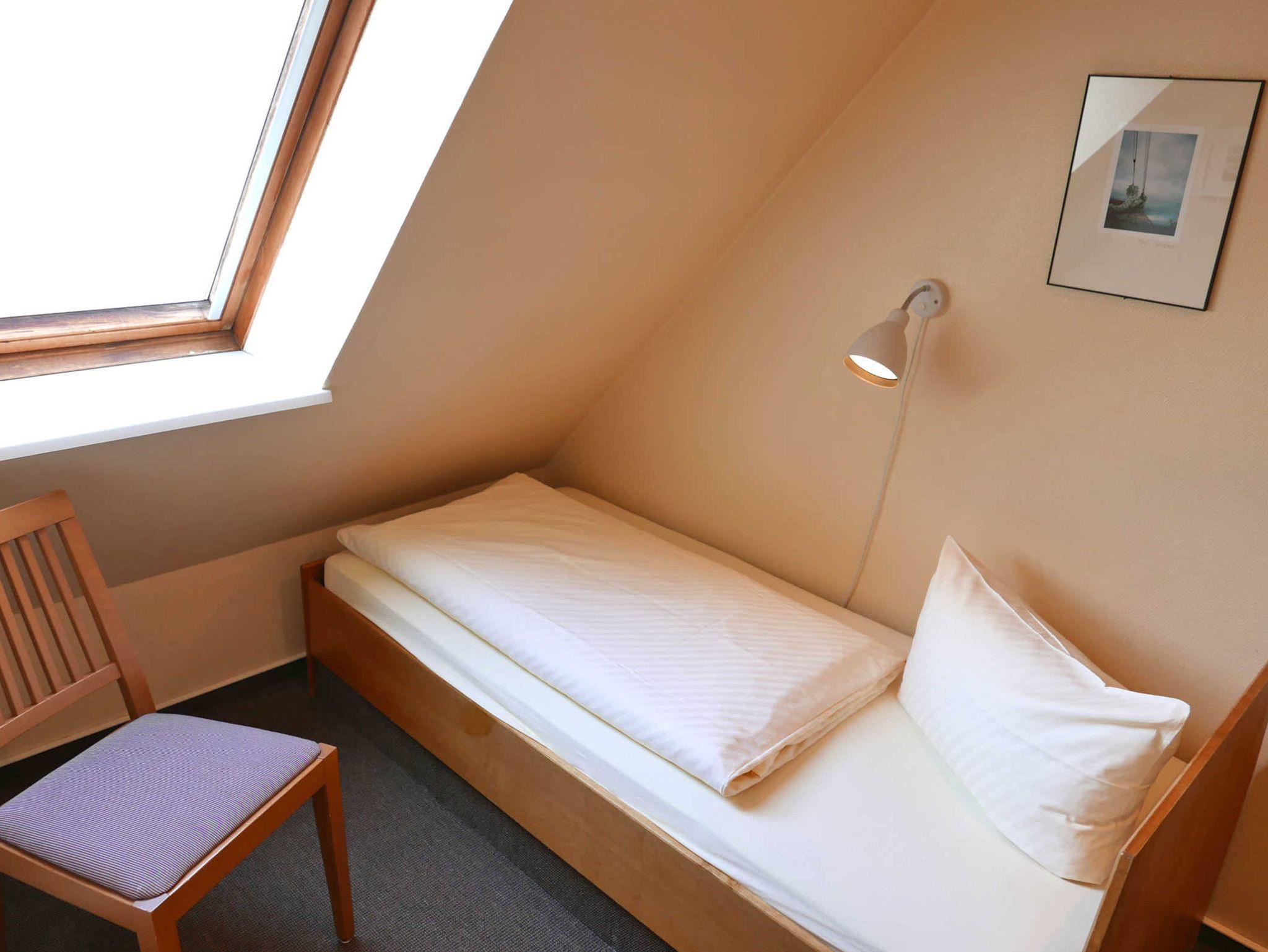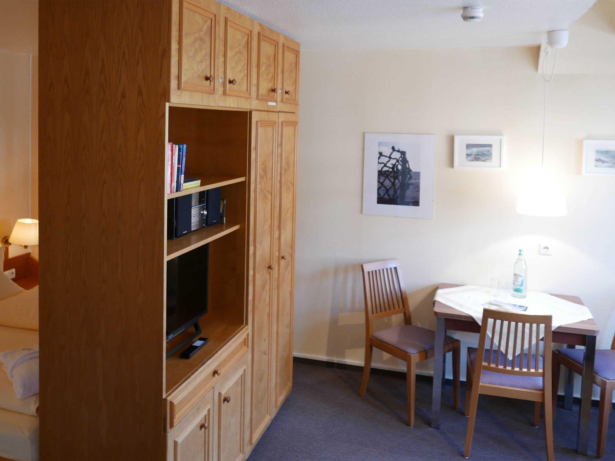 Die gemütliche 2-Zimmer-Wohnung für 2 Erwachsene und 1 Kind in der Inselresidenz Strandburg verfügt über ein Wohn-/Schlafzimmer mit optisch getrenntem Schlafbereich mit Doppelbett sowie einem Kinderzimmer mit Einzelbett.