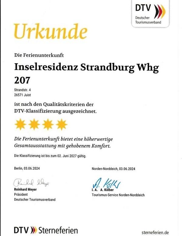 Die vom DTV mit 4 Sternen ausgezeichnete Nichtraucher Ferienwohnung für 2 bis 6 Personen mit Schwimmbad und Sauna im Haus befindet sich in der Inselresidenz Strandburg auf Juist in zentraler Lage im Ortskern, ca. 200 m vom Strand entfernt.