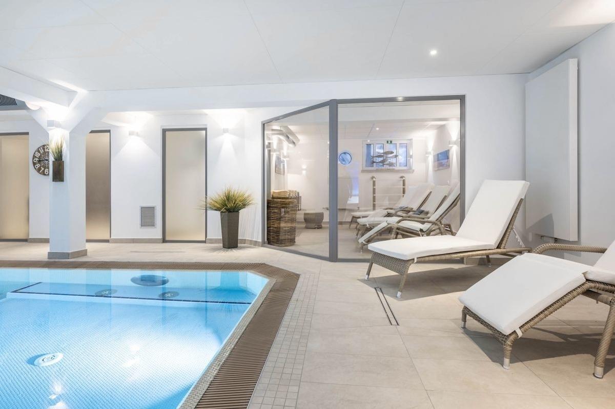 Diese komfortabel eingerichtete Ferienwohnung 206 in der ferienwohnung-juist-strandburg mit Schwimmbad und Sauna ist ideal geeignet für einen entspannten Urlaub für 2 oder 3 Personen oder als Familienurlaub für bis zu 5 Personen, zb. 3 Erwachsene und 2 Kinder. Die Wohnung besteht aus 4 Zimmern. Im Wohnraum mit Sofa und Récamiere steht optisch getrennt das freistehende Doppelbett (statt Schlafsofa), mit den Maßen 160 x 200cm. In den beiden Schlafzimmern steht ein Einzelbett (90 x 200cm) und ein Etagenbett, welches mit den Maßen 80 x 180cm ideal für Kinder geeignet ist. Über die beiden Schlafräume gelangt man zu den beiden Trittbalkonen , die einen wunderbaren Weitblick auf das Wattenmeer und die Strandstrasse bieten. Ein Essplatz für bis zu 5 Personen befindet sich in der Essdiele. Die Küchenzeile ist komplett ausgestattet incl. Geschirrspüler, Mikrowelle, 4 Koch Ceranfeld etc. Den Gästen in der Inselresidenz Strandburg steht der hauseigene Wellnessbereich mit Schwimmbad und Sauna zur Verfügung. Im Mietpreis enthalten sind Bettwäsche, Handtücher, Geschirrtücher. Ein Hochstuhl + Kinderbett auf Anfrage. Bei Anreise liegen Bademäntel für 2 Erwachsene bereit, weitere Bademäntel für Mitreisende auf Anfrage (Kindergrößen vorhanden). Die Wohnung liegt in der 2. Etage und ist problemlos mit einem Aufzug zu erreichen. Bei Ankunft im Haus werden Sie von der freundlichen Hausdame am Empfang begrüßt, die Ihnen auch während Ihres Aufenthaltes bei Fragen gerne zur Verfügung steht. Im Untergeschoss stehen Ihnen Münzwaschmaschinen- und Trockner zur Verfügung. Es ist bis zu 1 Hund gegen Aufpreis in der Wohnung erlaubt. Hierfür gilt die Hunde Hausordnung der Inselresidenz Strandburg.
