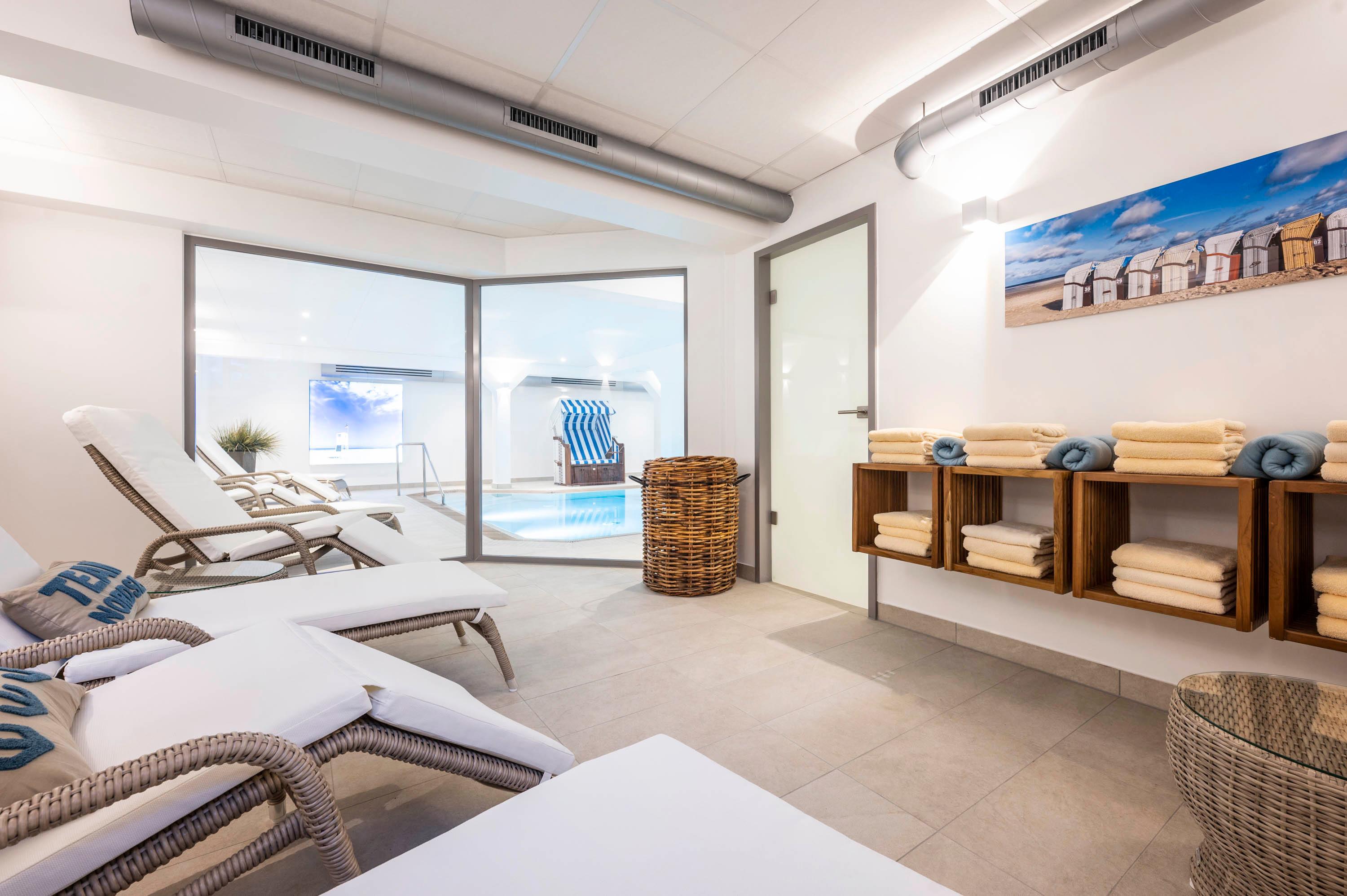 Diese komfortabel eingerichtete Ferienwohnung 307 in der ferienwohnung-juist-strandburg mit Schwimmbad und Sauna wurde 2025 komplett renoviert und eignet sich perfekt für 2 bis 3 Personen. Die Wohnung besteht aus 2 Zimmern. Im Wohnraum mit gemütlichem Sofa und Sessel steht optisch getrennt das freistehende Doppelbett (statt Schlafsofa). Genießen Sie Ihr Lieblingsprogramm auf dem schwenkbaren Smart TV, entweder vom Sofa oder vom Bett aus. Im 2. Zimmer befindet sich die 3. Schlafmöglichkeit, sodaß dieses Zimmer einen weiteren Rückzugsort bietet. Die Küchenzeile ist komplett ausgestattet mit Kühlschrank, Geschirrspüler, 2er Induktionskochfeld, Kaffeemaschine, Wasserkocher etc. Am runden Esstisch finden bis zu drei Personen Platz. Den Gästen der Inselresidenz Strandburg steht der hauseigene Wellnessbereich mit Schwimmbad und Sauna zur Verfügung. Im Mietpreis enthalten sind Bettwäsche, Handtücher, Geschirrtücher. Ein Hochstuhl + Kinderbett auf Anfrage. Bei Anreise liegen Bademäntel für 2 Erwachsene bereit, weitere Bademäntel für Mitreisende auf Anfrage (Kindergrößen vorhanden). Die Wohnung liegt in der 3. Etage und ist problemlos mit einem Aufzug zu erreichen. Bei Ankunft im Haus werden Sie von der freundlichen Hausdame am Empfang begrüßt, die Ihnen auch während Ihres Aufenthaltes bei Fragen gerne zur Verfügung steht. Im Untergeschoss stehen Ihnen Münzwaschmaschinen- und Trockner zur Verfügung. Es ist bis zu 1 Hund gegen Aufpreis in der Wohnung erlaubt. Hierfür gilt die Hunde Hausordnung der Inselresidenz Strandburg.