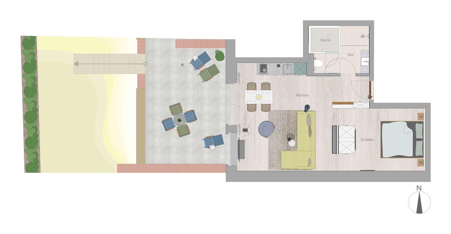 In unserer komfortablen Ferienwohnung "Seestern" mit hochwertigem Mobiliar, sonniger Terrasse und eigener Sauna erwartet Sie ein Traumurlaub mit Erholungsgarantie!