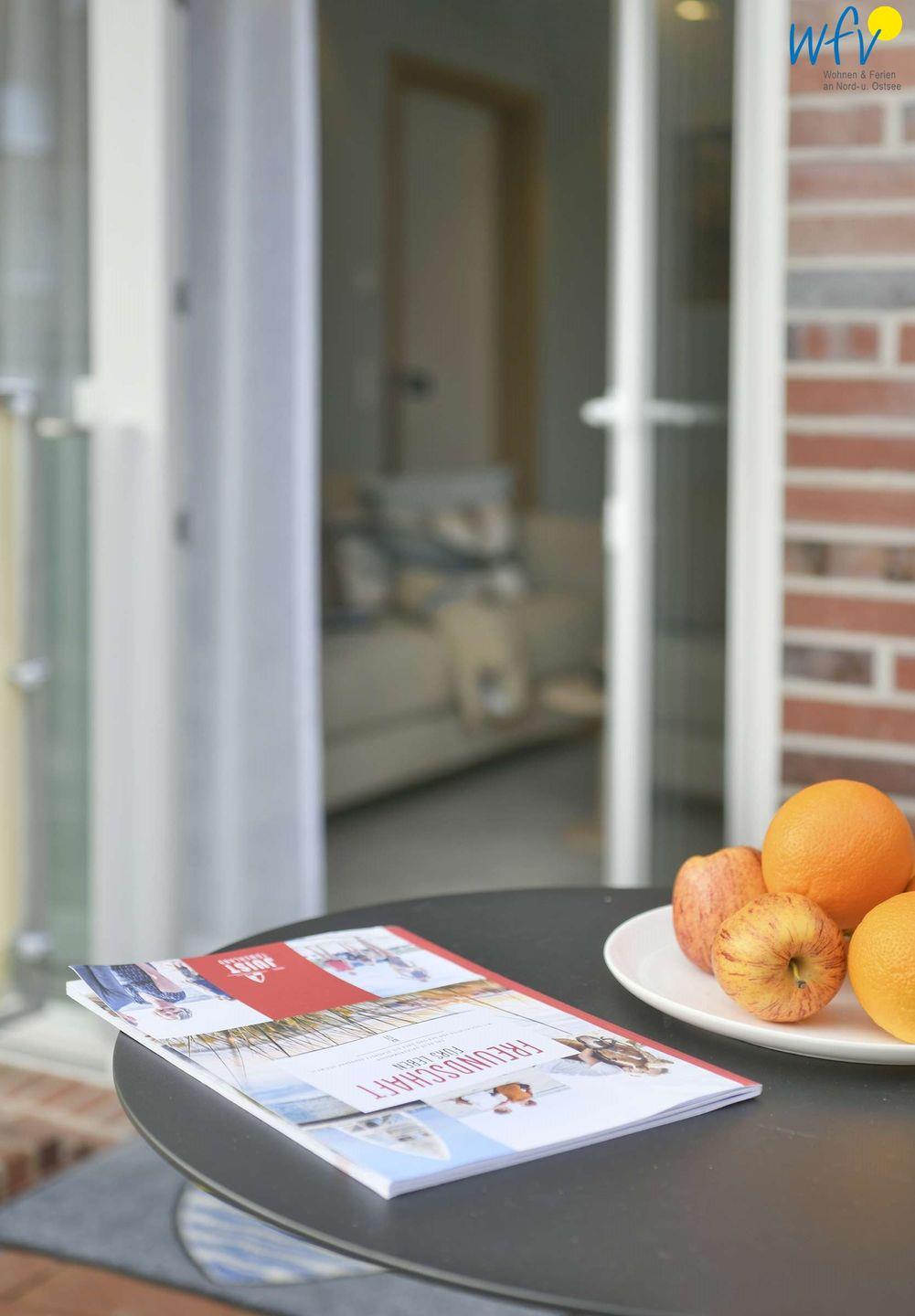 Auch die 12 m² große Terrasse mit Liegestühlen, Sonnenschirm und Strandkorb lädt zur Erholung ein! Hier können Sie ganz in Ruhe ein spannendes Buch lesen, die Sonne genießen oder bei einem guten Glas Wein den Tag ausklingen lassen. Das sind unvergessliche Urlaubserlebnisse auf dem Töwerland.