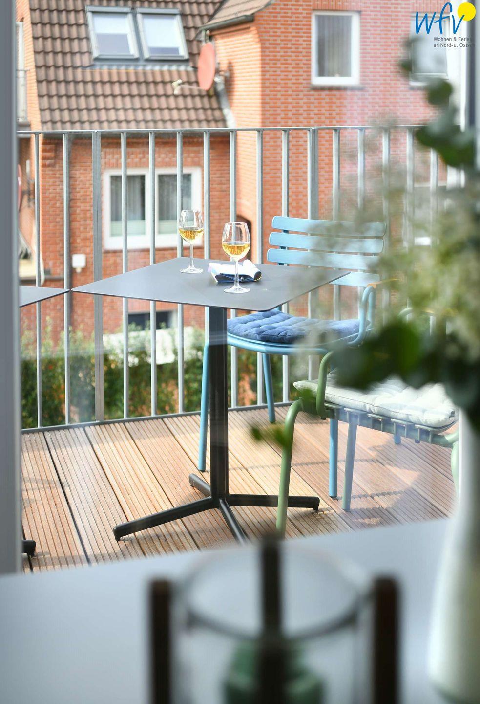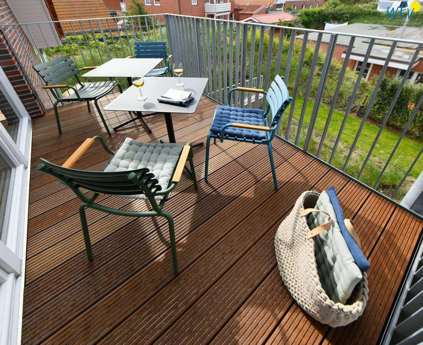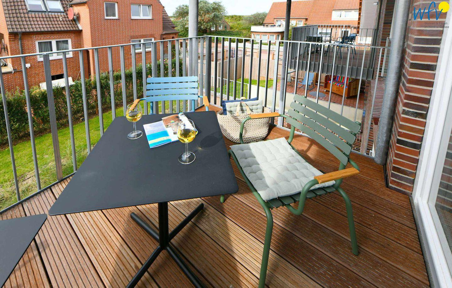 Lassen Sie sich in Ihrem Urlaub auf Juist von uns verwöhnen: Der 7 m² große möblierte Balkon lädt zu herrlichen Stunden an der frischen Nordseeluft ein! Sich hier die Sonne ins Gesicht scheinen zu lassen, ein spannendes Buch zu lesen oder bei einem guten Glas Wein die Abendröte zu beobachten - das sind unvergessliche Urlaubserlebnisse auf dem schönen Töwerland!