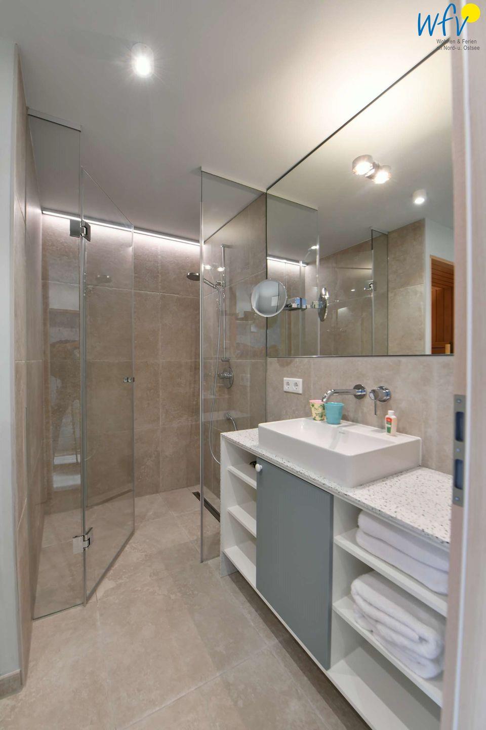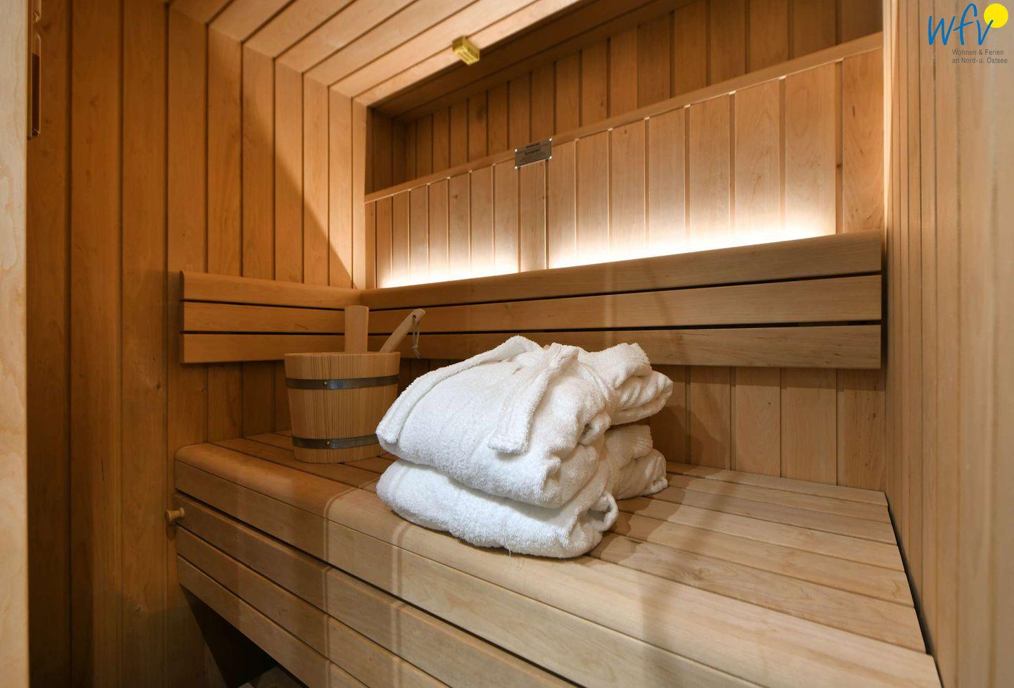 Weiteren Wohnkomfort bieten Ihnen die modernen Badezimmer mit Dusche und eigener Sauna. Ideal für Entspannungsmomente nach dem Strandspaziergang!