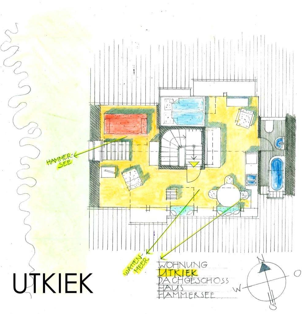 Unsere Ferienwohnung „Utkiek“ liegt im Dachgeschoss vom "Haus Hammersee". Wie der Name verspricht, haben Sie von hier aus einen schönen Ausblick in Juists Naturlandschaft. Die Wohnung eignet sich für einen Urlaub mit bis zu vier Personen – gerne auch mit Ihrem Vierbeiner!