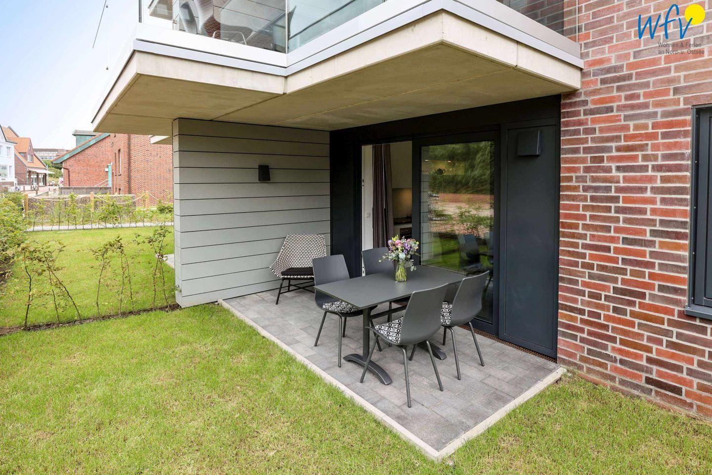 Genießen Sie auf Juist wärmende Sonnenstrahlen und frische Nordseeluft: Auf der großen Terrasse unserer Ferienwohnung "BRAVO" sind Ihnen herrliche Stunden zum Relaxen garantiert. Perfekt, um in Ruhe ein spannendes Buch zu lesen, die Seele baumeln zu lassen oder bei einem guten Glas Wein den Abend zu genießen.