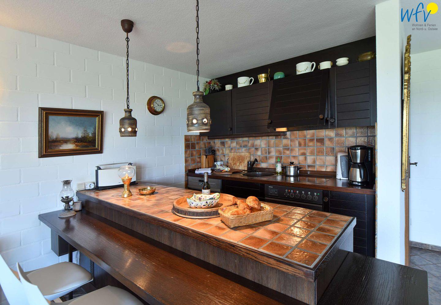 Für eine bequeme Selbstverpflegung verfügt die Ferienwohnung "Karin`s Nest" über eine gut ausgestattete Küche mit diversen Geräten - u.a. ein Ceranherd mit Backofen, ein Kühlschrank mit Gefrierfach und eine Spülmaschine.