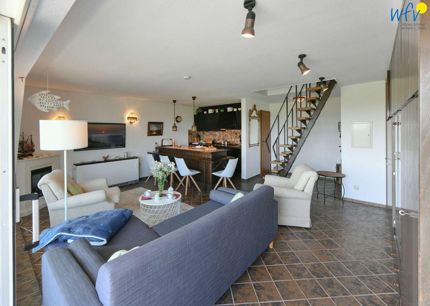 Unsere Ferienwohnung "Karin`s Nest" auf Juist ist ideal für einen Urlaub mit der Familie oder mit Freunden! Auf insgesamt 70 m² Wohnfläche erstreckt sich die Unterkunft großzügig über zwei Etagen. Im Dachgeschoss befindet sich eine gemütlich eingerichtete Schlafetage mit einem Doppelbett und einem Einzelbett (2 x 2 m bzw. 2 x 1,90 m; über eine recht steile Treppe erreichbar). Ein kleines Gästebadezimmer mit WC und ein Waschbecken im Zimmer selbst bieten zusätzlichen Wohnkomfort. Auch von dieser Etage aus haben Sie einen wunderschönen Blick auf das Wattenmeer! In der unteren Etage erwartet Sie ein weiteres separates Schlafzimmer mit Doppelbett (2 x 2 m), ein Badezimmer und ein geräumiger Wohnraum mit gemütlicher Couchecke und TV.