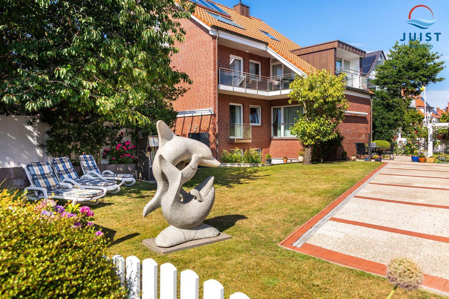 Die 60 m2 große Ferienwohnung für bis zu 4 Personen überzeugt mit einem sonnigem Gemeinschaftsgarten. Der Strandkorb und die Sonnenliegen garantieren erholsame Stunden.