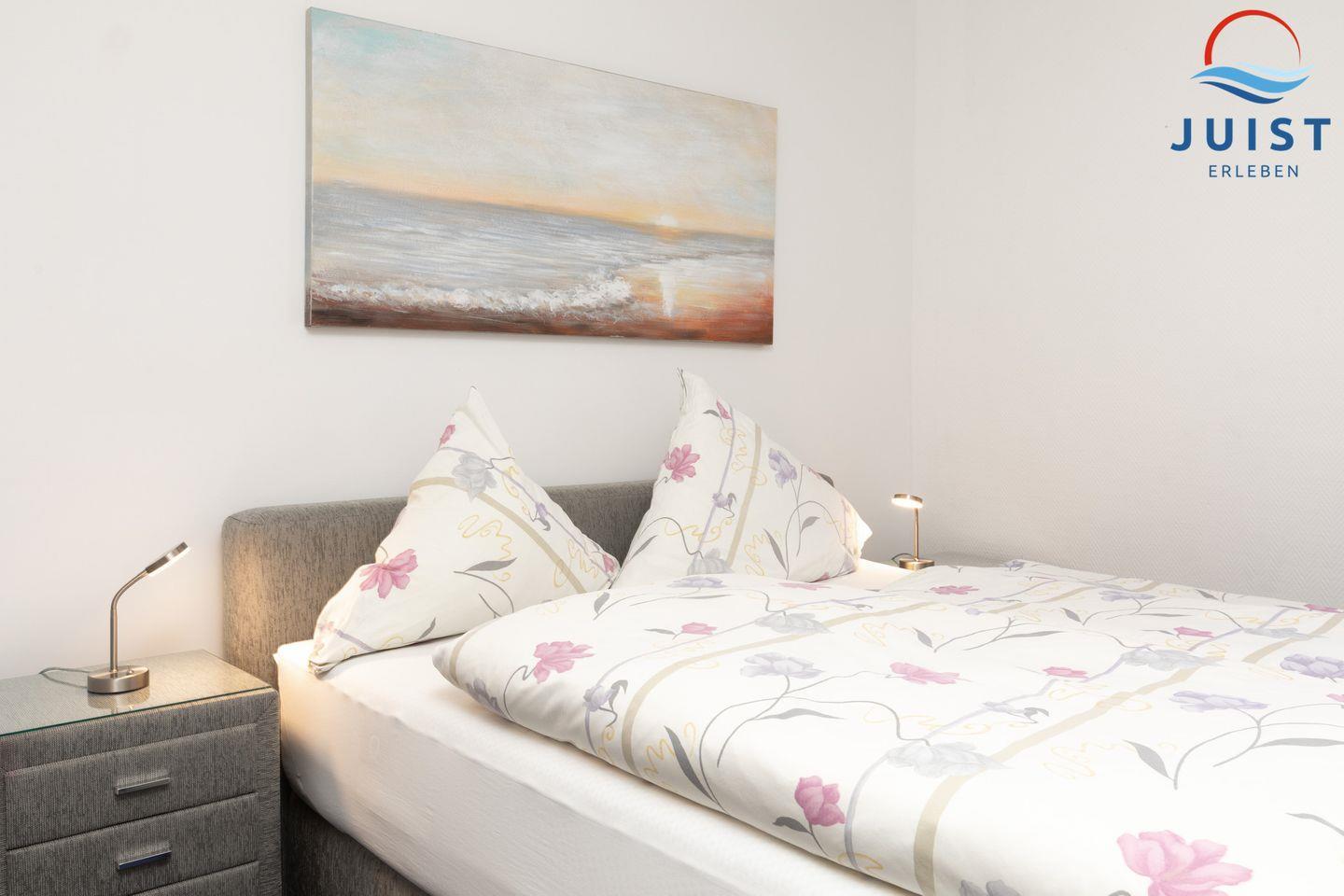 Die 2 separate Schlafzimmer verfügen über 1 Boxspringbett sowie 1 Zimmer mit 2 Einzelbetten.