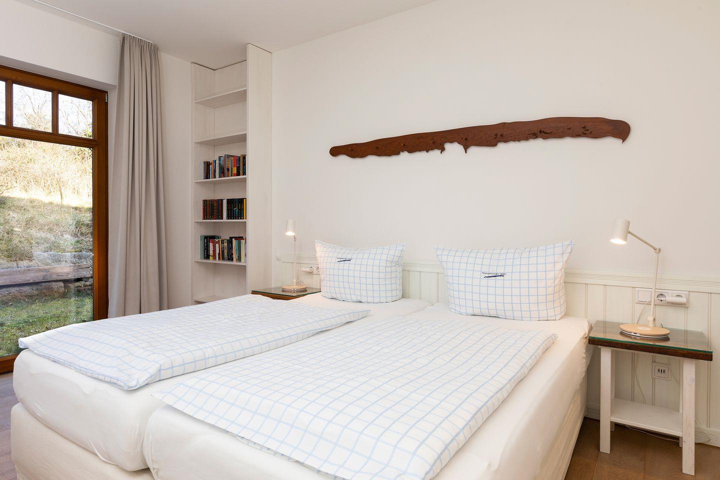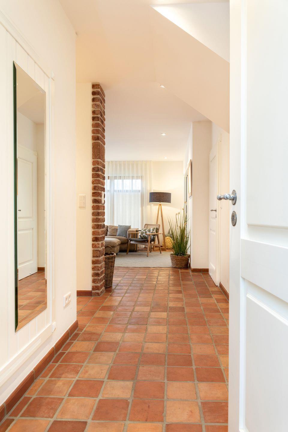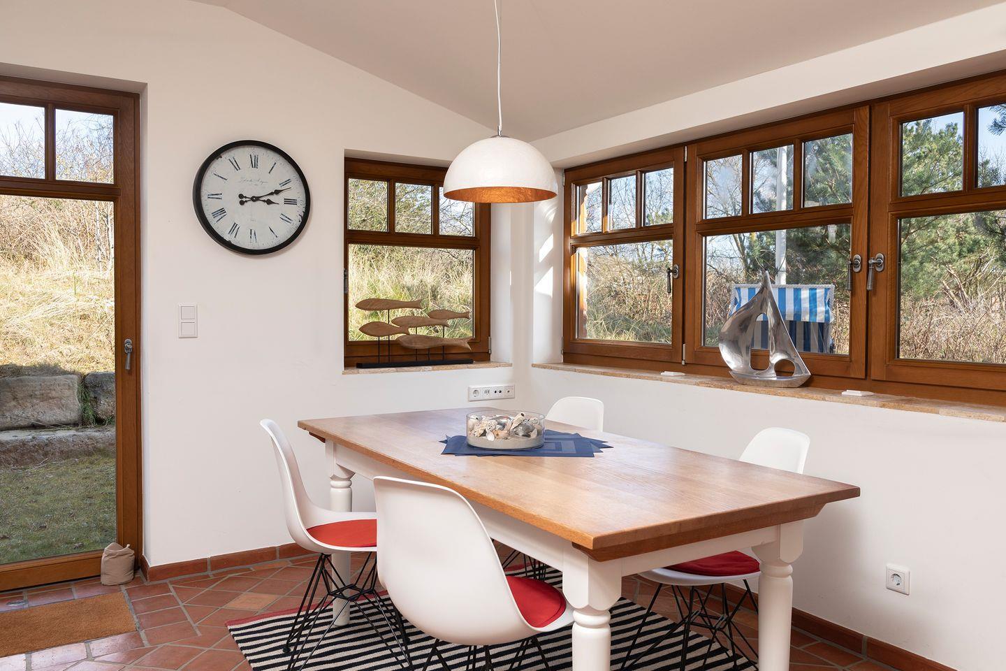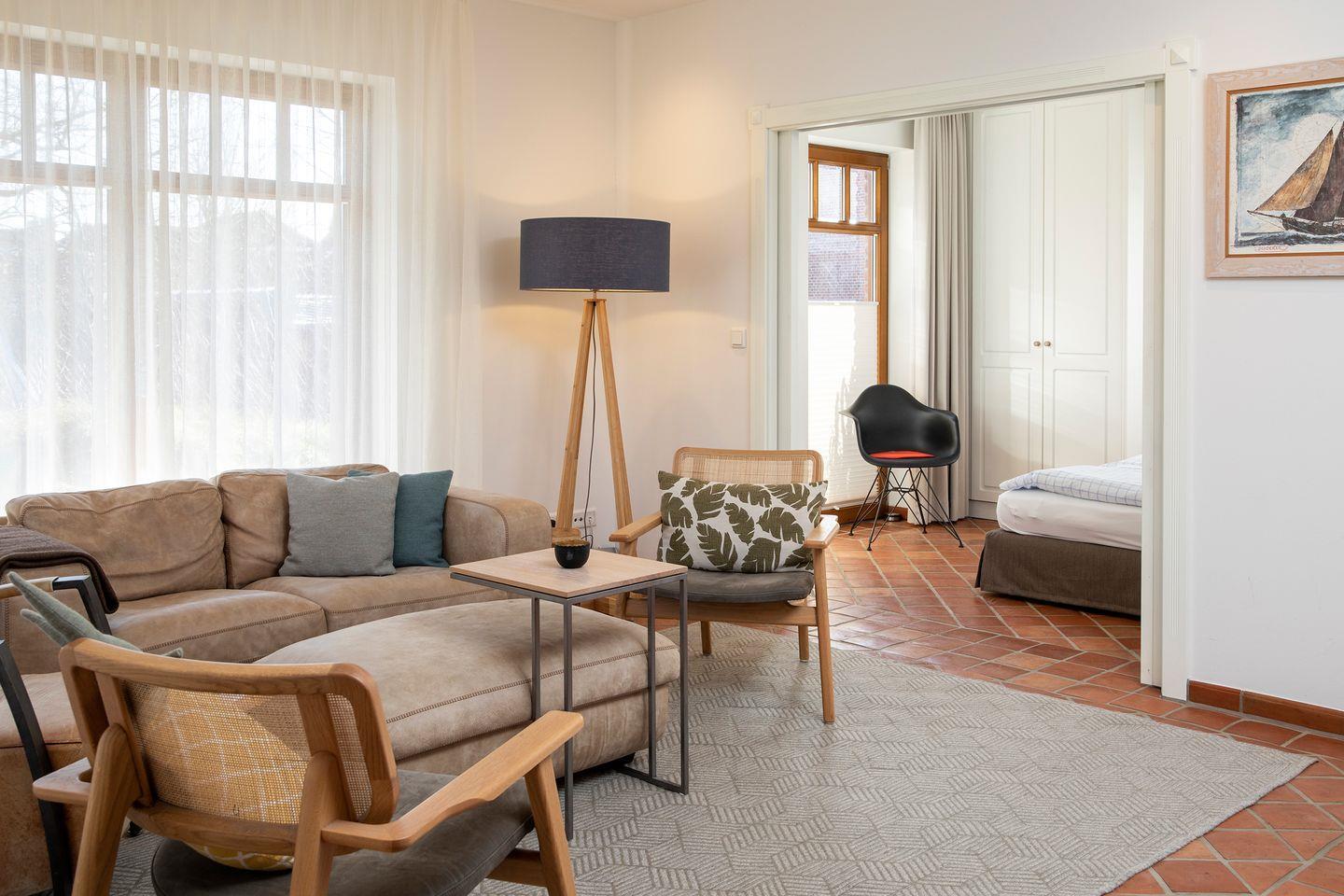Wohnung „Strandhafer“ und die darüberliegende Wohnung „Dünenrose“ lassen sich auf der Erdgeschossebene verbinden und sind als gesamtes Ferienhaus für 8 Personen kombinierbar.