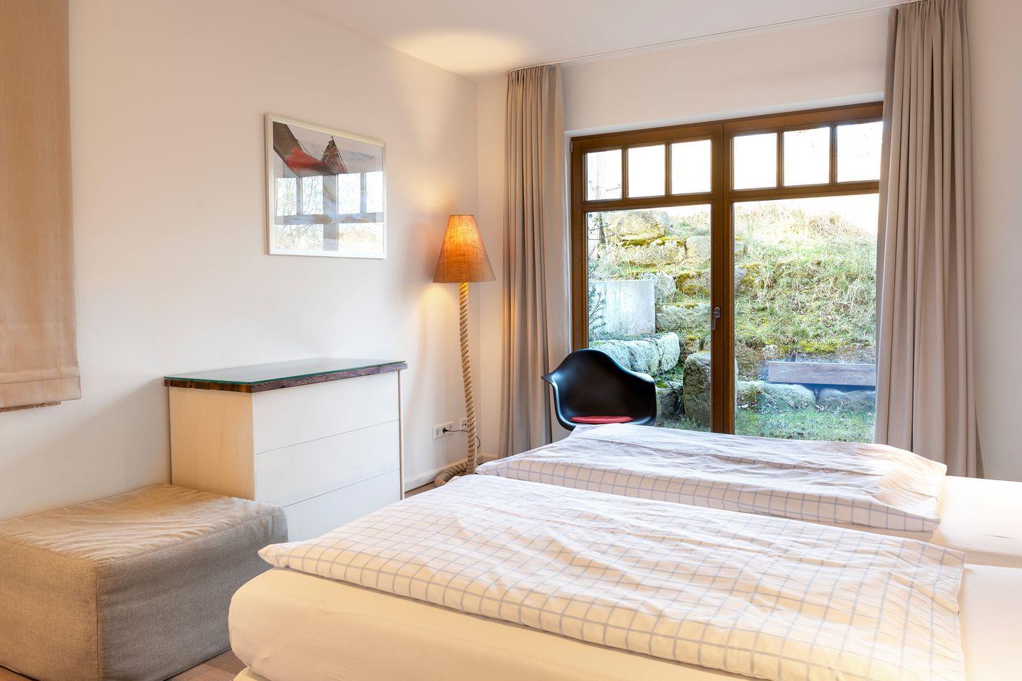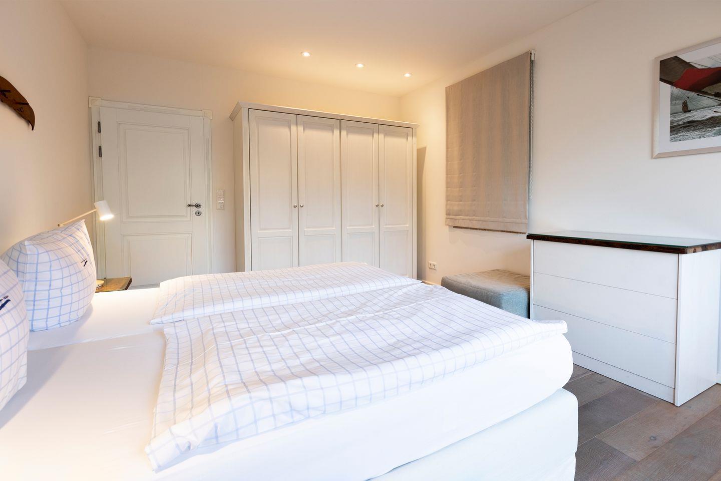 Im Schlafzimmer mit Doppelbett kann ein Zustellbett bei Bedarf platziert werden. Im zweiten Schlafraum lässt sich wahlweise das Doppelbett in zwei Einzelbetten umfunktionieren.