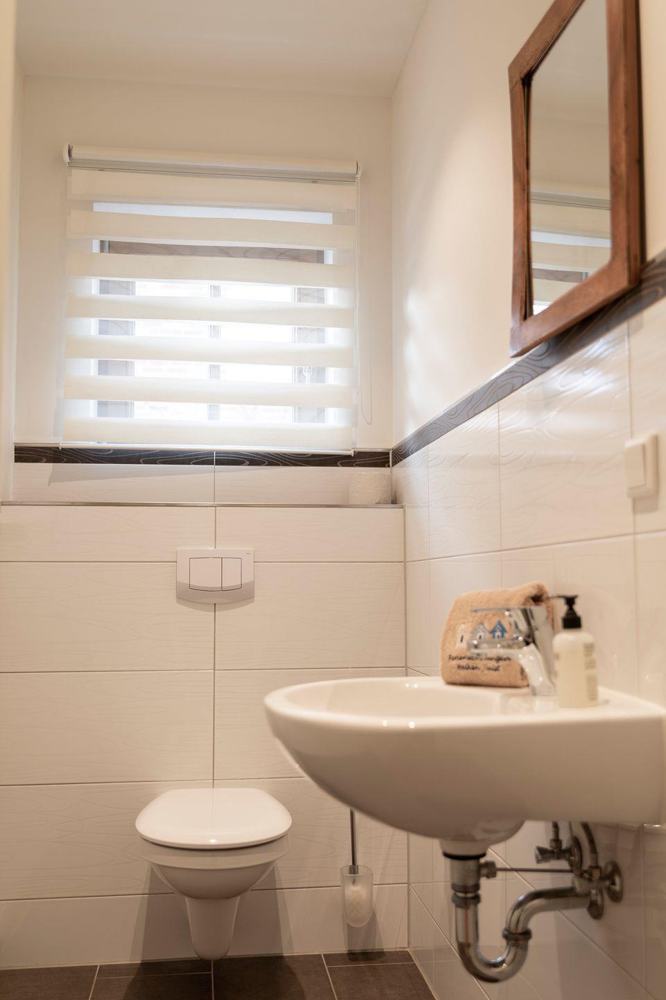 Die Wohnung verfügt über ein Badezimmer, sowie ein zusätzliches separates Gäste-WC. Grundsätzlich sind Fön, Handtücher/Duschtücher vorhanden. Waschmaschine und Trockner stehen im Haus-Wirtschaftsraum zur Verfügung.