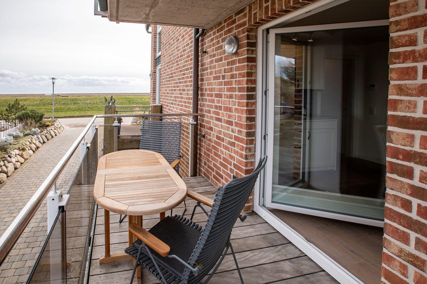 Der 5m² grosse Balkon der Wohnung „Plicht“ liegt zur Ost-Seite mit Blick in die Dünen oder über das Wattenmeer.