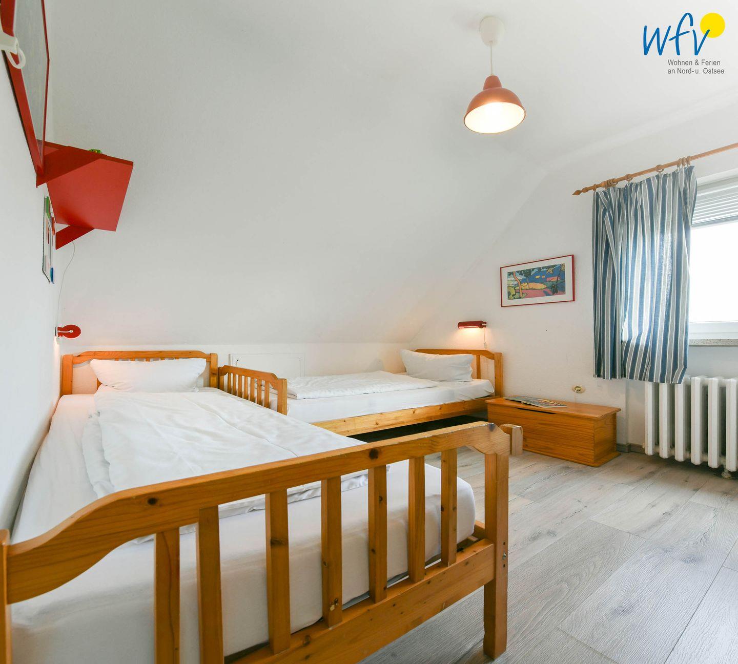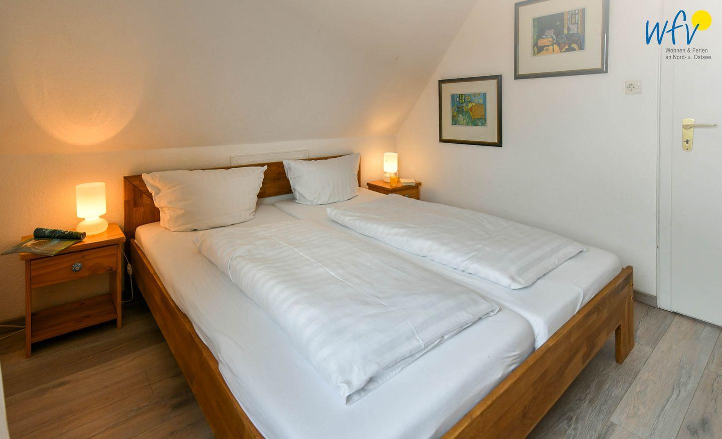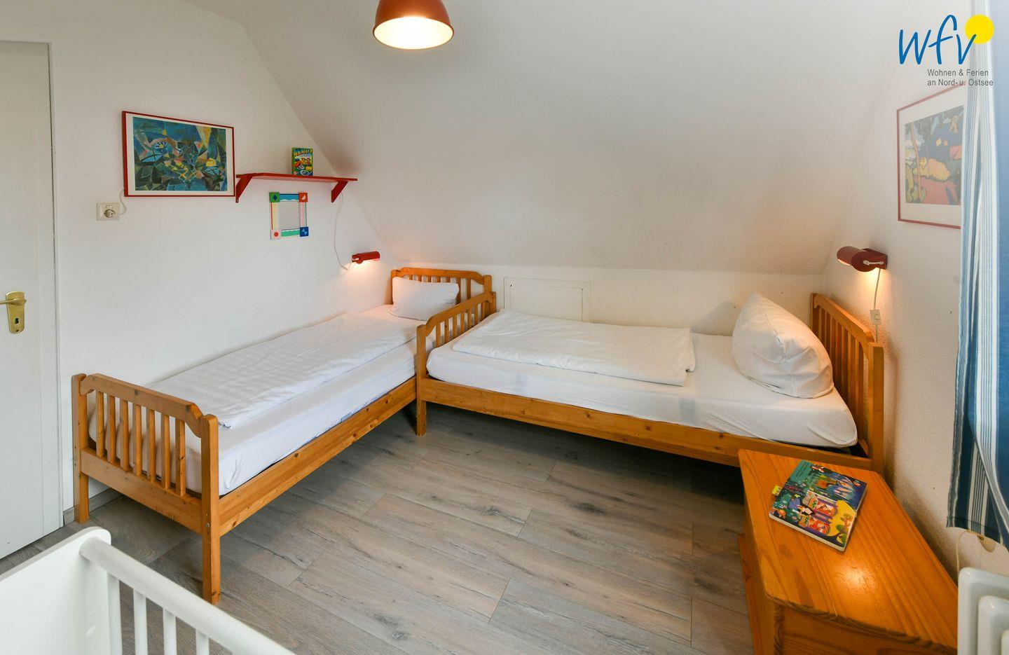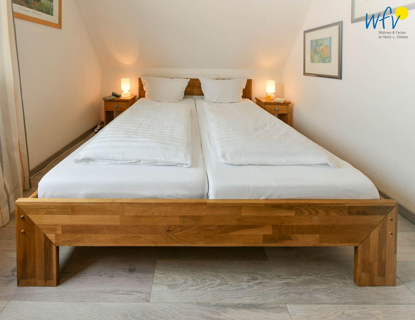 Zwei separate Schlafzimmer bieten Ihnen in der Ferienwohnung angenehme Rückzugsmöglichkeiten. In dem einen befindet sich ein großes Doppelbett (180 x 200 cm), in dem anderen zwei Einzelbetten (je 90 x 200 cm).