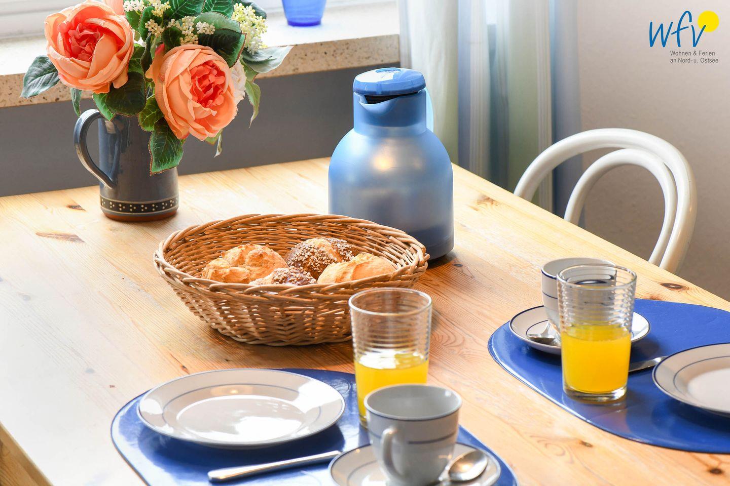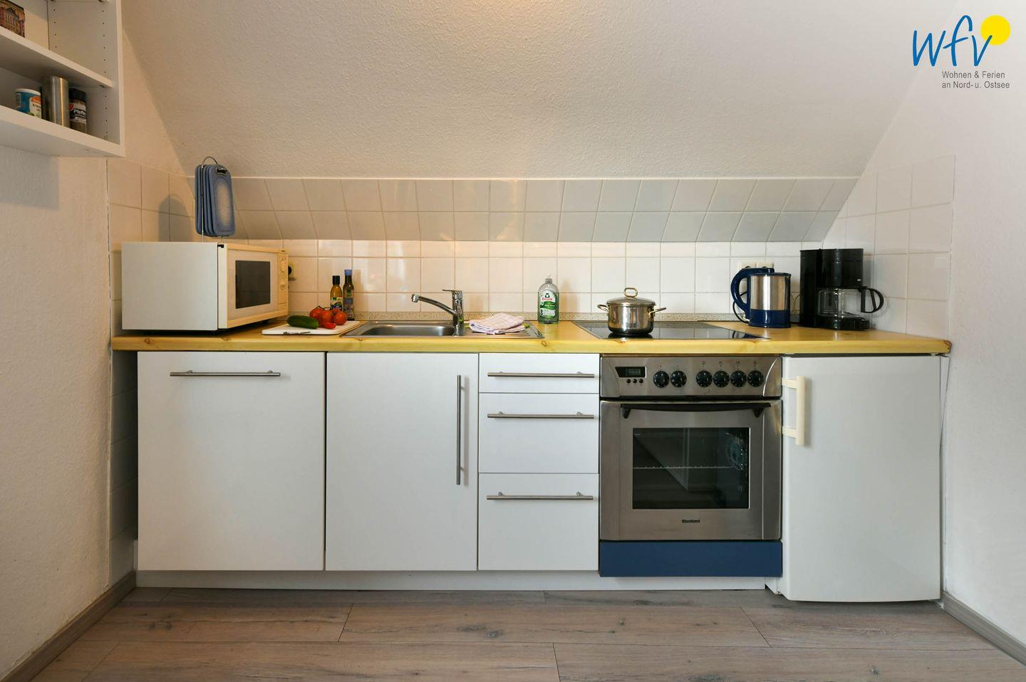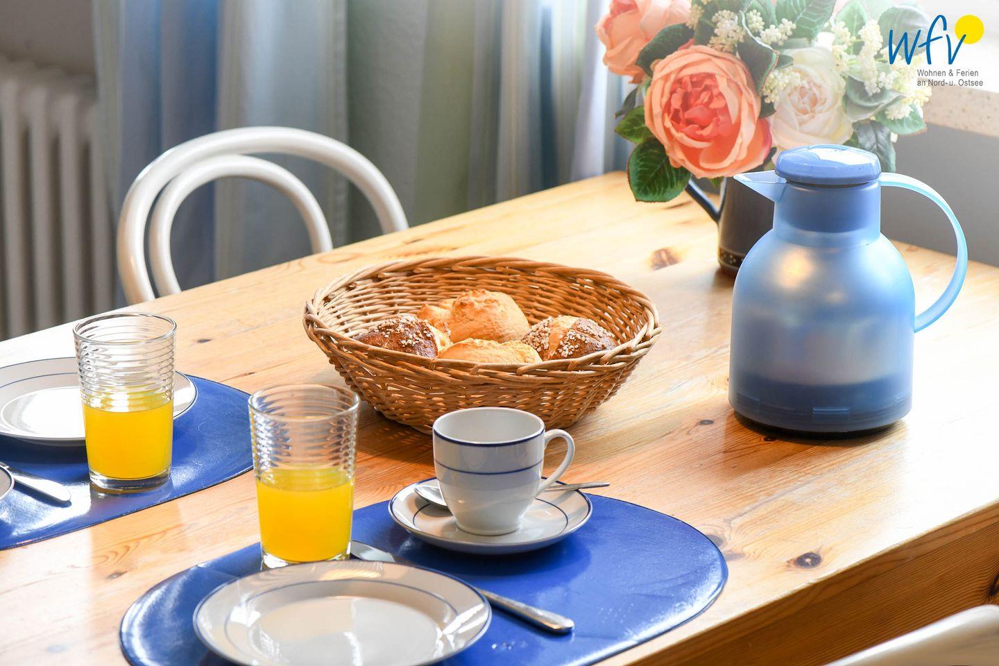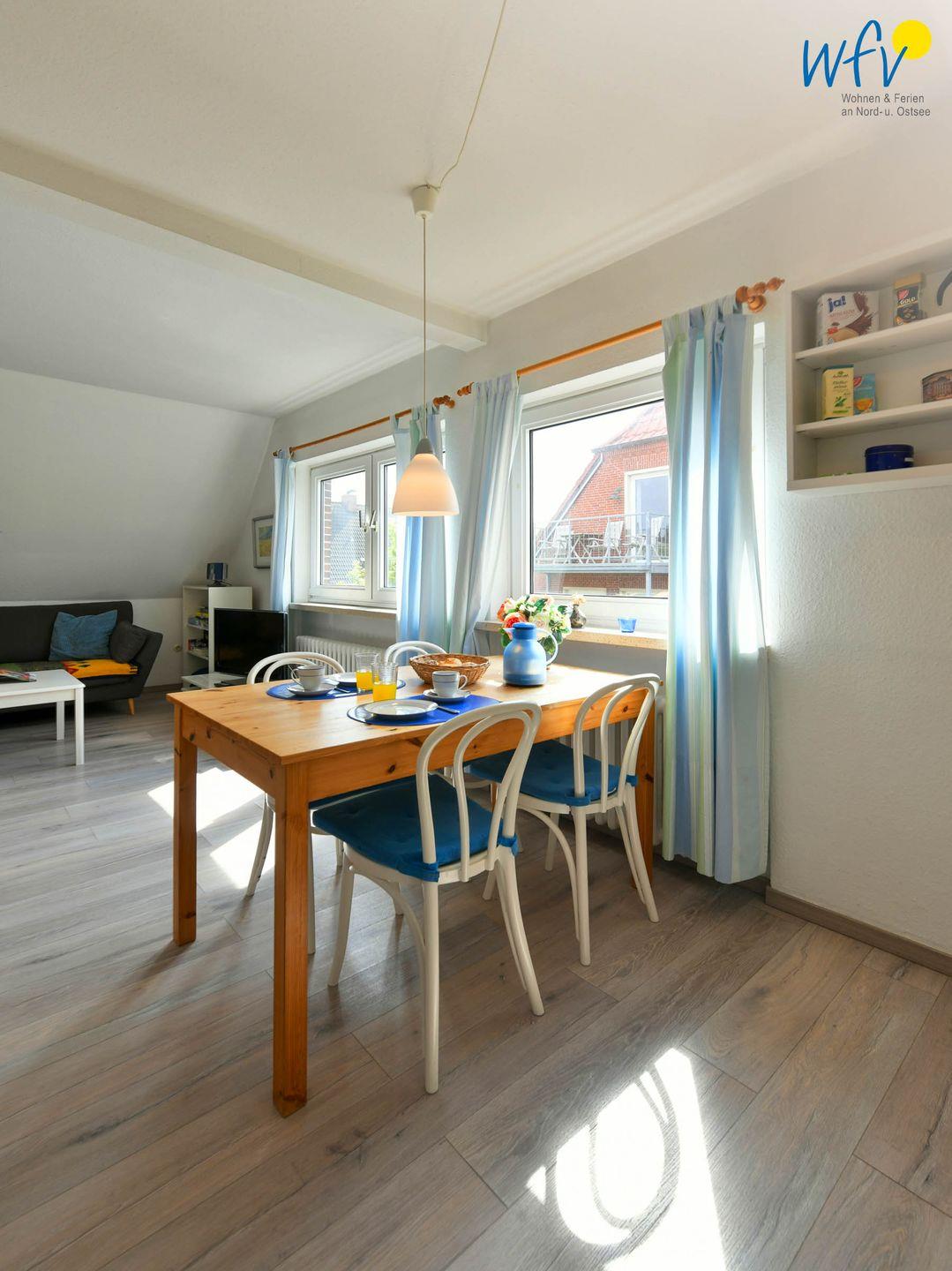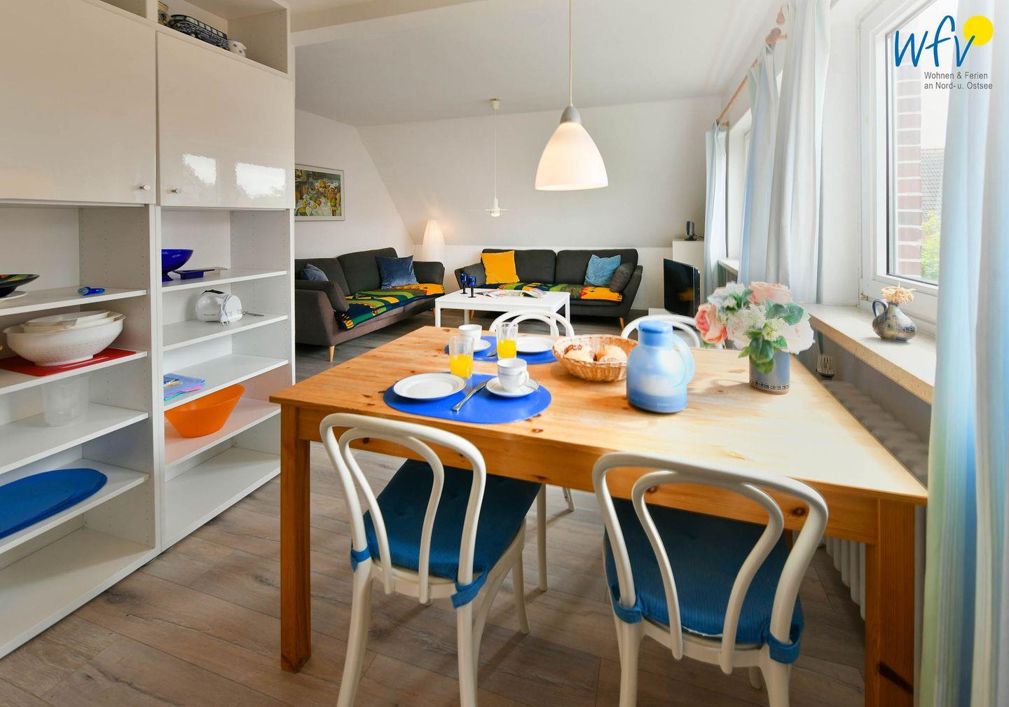 Nach der Fahrradtour oder dem Strandtag lädt der gemütliche Wohnraum mit schöner Abendsonne zum Entspannen ein. Auf den zwei Sofas mit TV und Radio können Sie es sich bequem machen. Zum Surfen vom Smartphone aus empfangen Sie kostenlos freies WLAN.