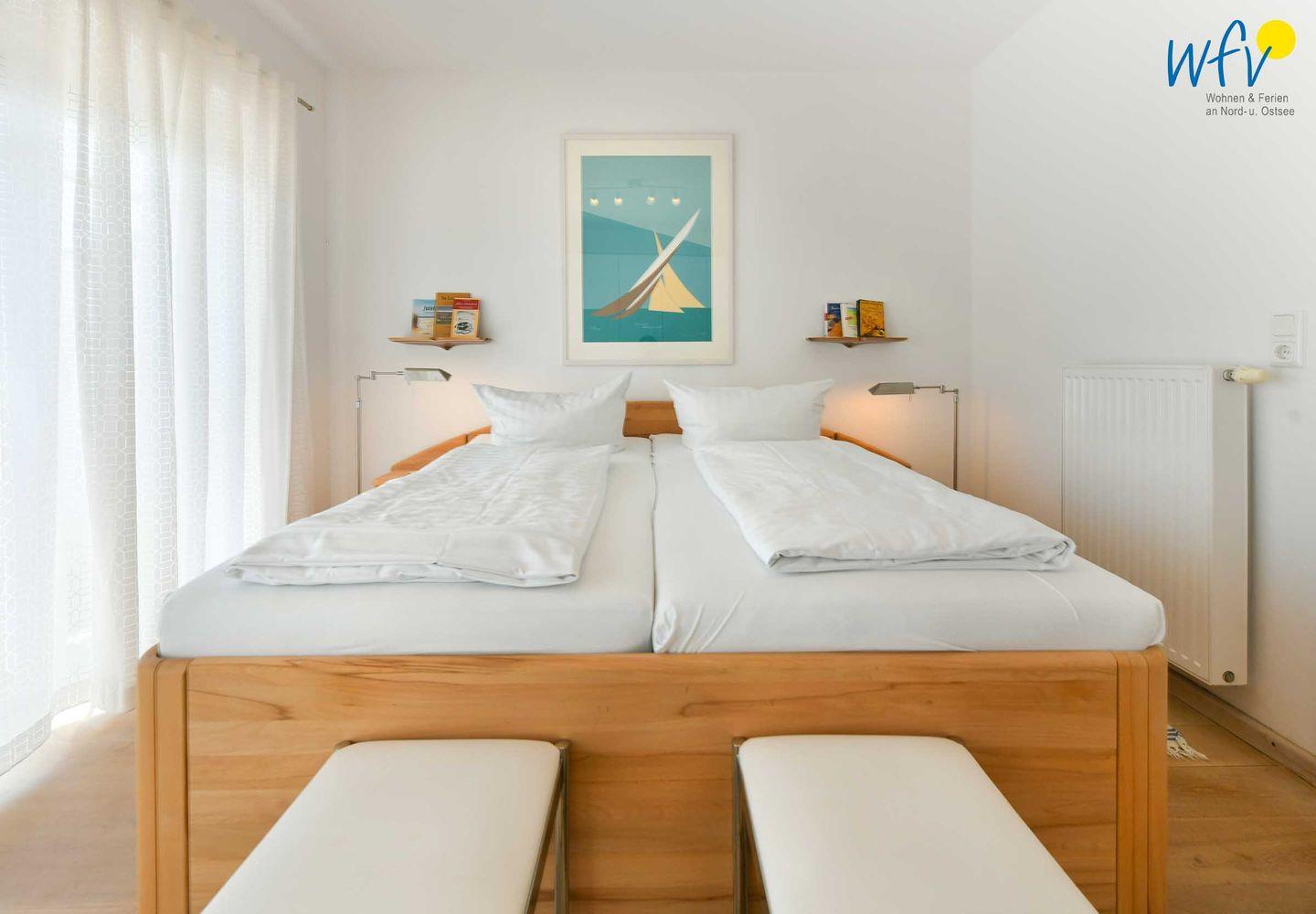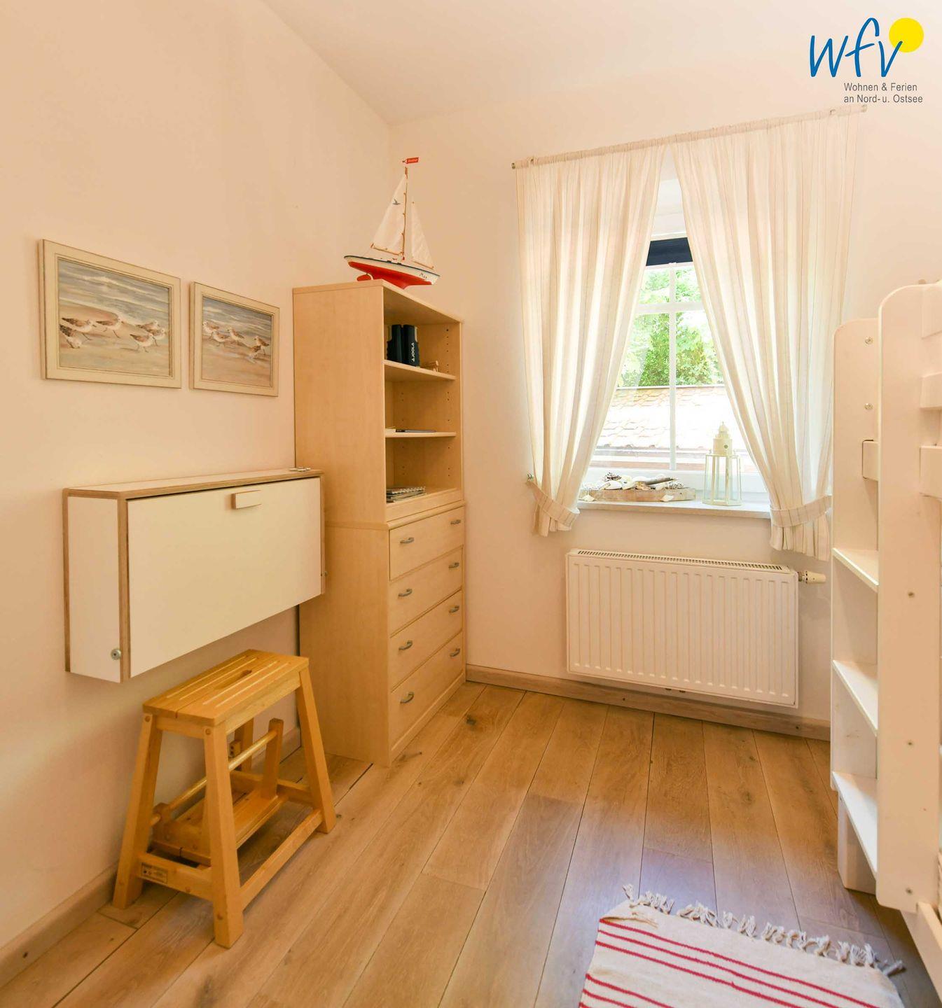 Drei separate Schlafzimmer bieten Ihnen angenehme Rückzugsmöglichkeiten. Das Elternschlafzimmer (EG) ist mit einem Doppelbett (180 x 200 cm) und einem Kleiderschrank ausgestattet, das Kinderschlafzimmer (EG) mit einem Etagenbett (je 90 x 200 cm) sowie mit einem kleinen Kleiderschrank und einem kleinen Schreibtisch. In dem separaten Schlafzimmer im 2. OG befindet sich eine Schlafcouch für zwei Personen (160 x 200 cm), die Sie bei Bedarf ebenfalls nutzen können.