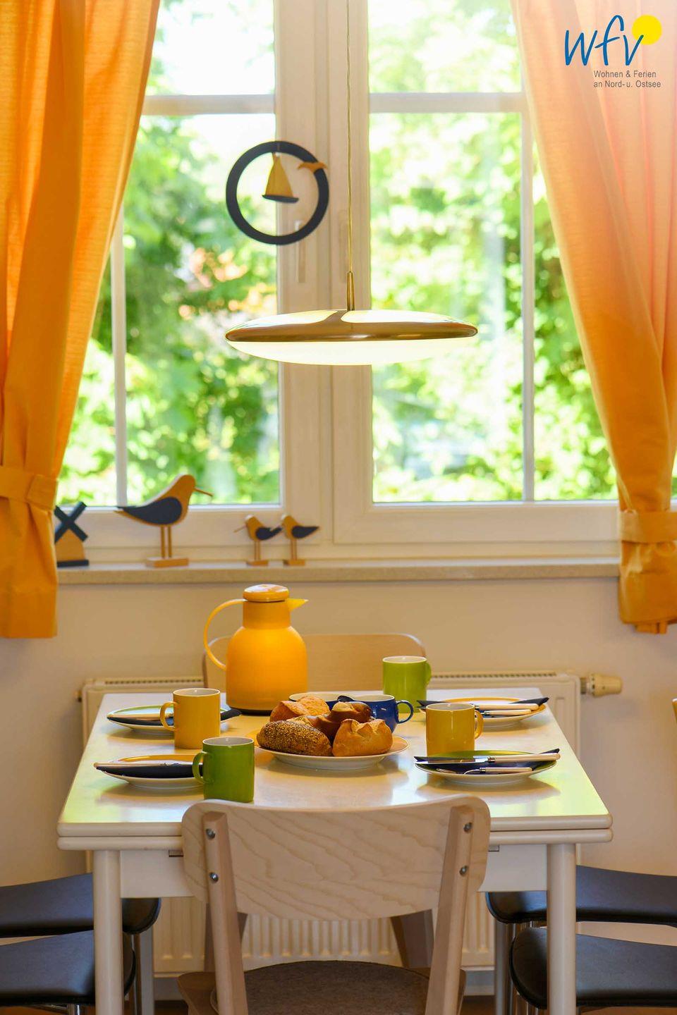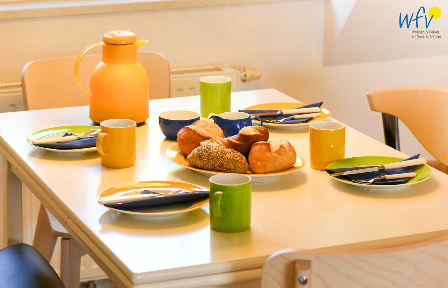 Beim Ferienfrühstück lassen sich am Esstisch mit Blick ins Grüne tolle Pläne für den Urlaubstag auf Juist machen. Und während einer von Ihnen den Rucksack für den Ausflug packt, kann in der offenen Küche mit Ceranherd, Backofen und Mikrowelle der Proviant für unterwegs zubereitet werden. Den Abwasch übernimmt die Spülmaschine.