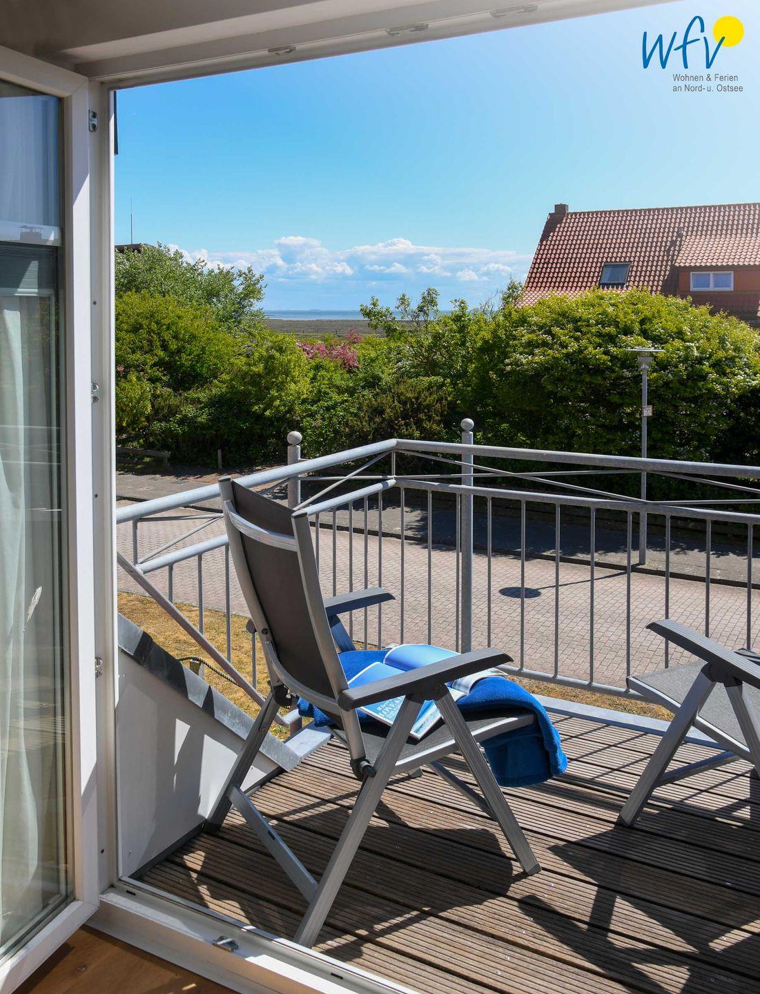 Wohltuende Nordseeluft buchen Sie in unserer Ferienwohnung 2 auf Juist inklusive: Sowohl auf der Terrasse mit Garten, als auch auf dem möblierten Balkon können Sie sich ausgiebig erholen, träumen und relaxen. Für gemeinsame Grillabende steht Ihnen ein praktischer Elektrogrill zur Verfügung. Vom Balkon aus haben Sie ebenfalls einen sehr schönen Ausblick auf das Wattenmeer!