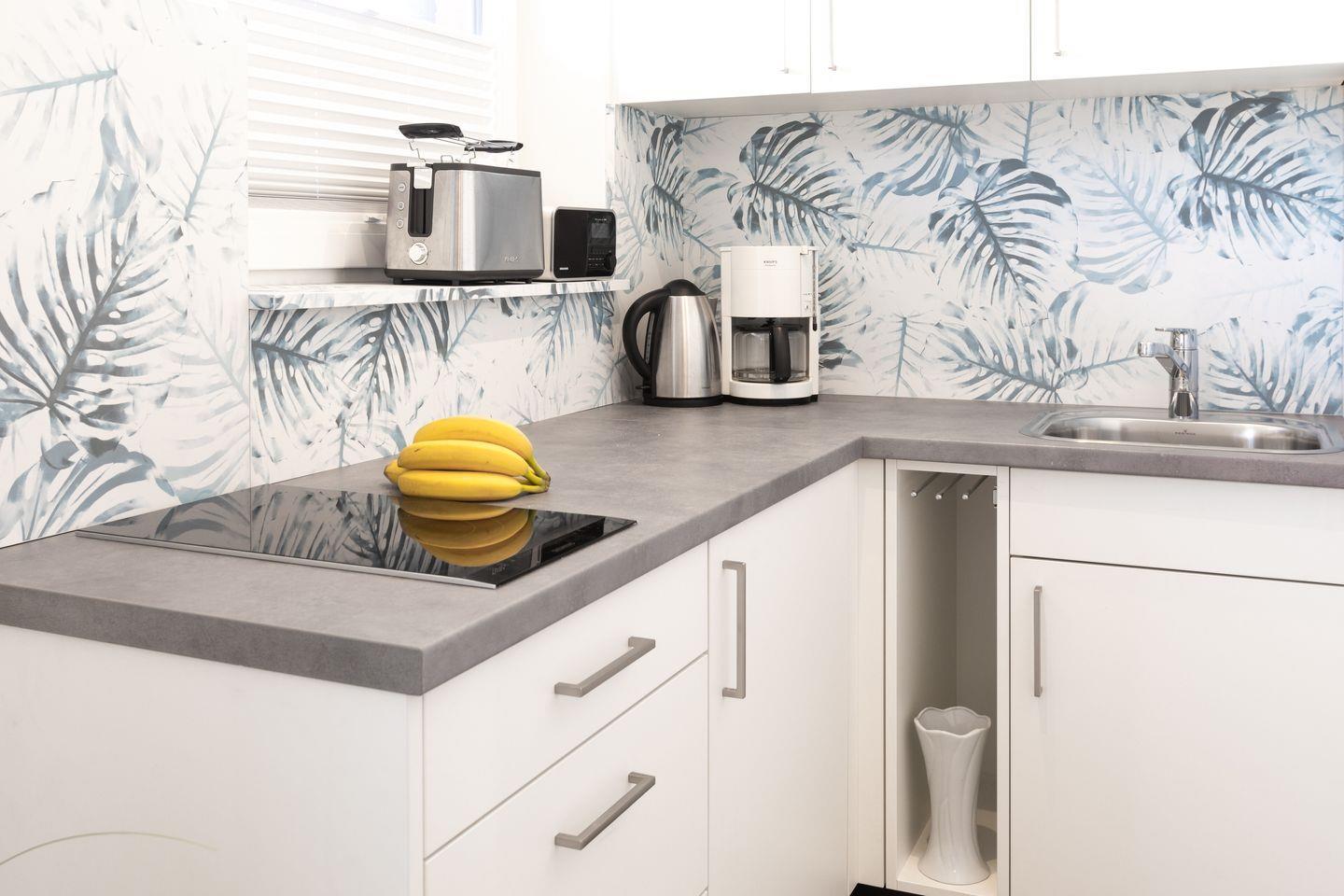 Das Appartement verfügt über ein Doppelbett und ein Schlafsofa sowie einen Esstisch, wo Sie die gemeinsamen Mahlzeiten in Geselligkeit genießen können. Die Kochnische bietet Ihnen alles, was Sie für die Zubereitung Ihrer Lieblingsgerichte benötigen – vom Herd über Kühlschrank, einer Filterkaffemaschine, bis hin zu Geschirr und Kochutensilien. Darüber hinaus verfügen Sie über einen Balkon mit Strandkorb, der sich ideal für entspannende Stunden an der frischen Luft eignet.