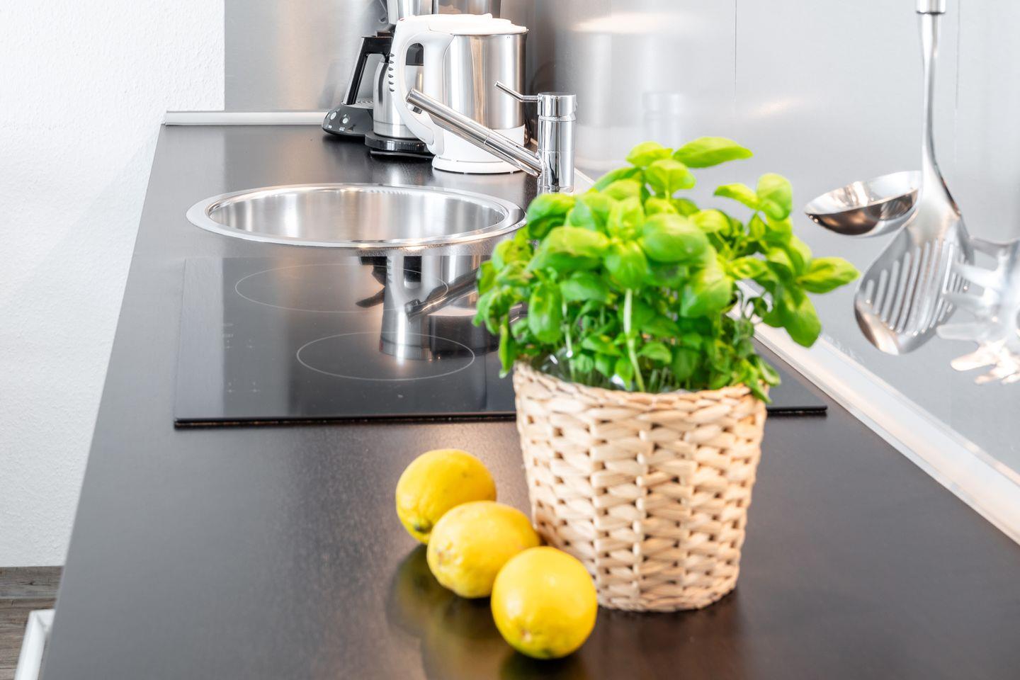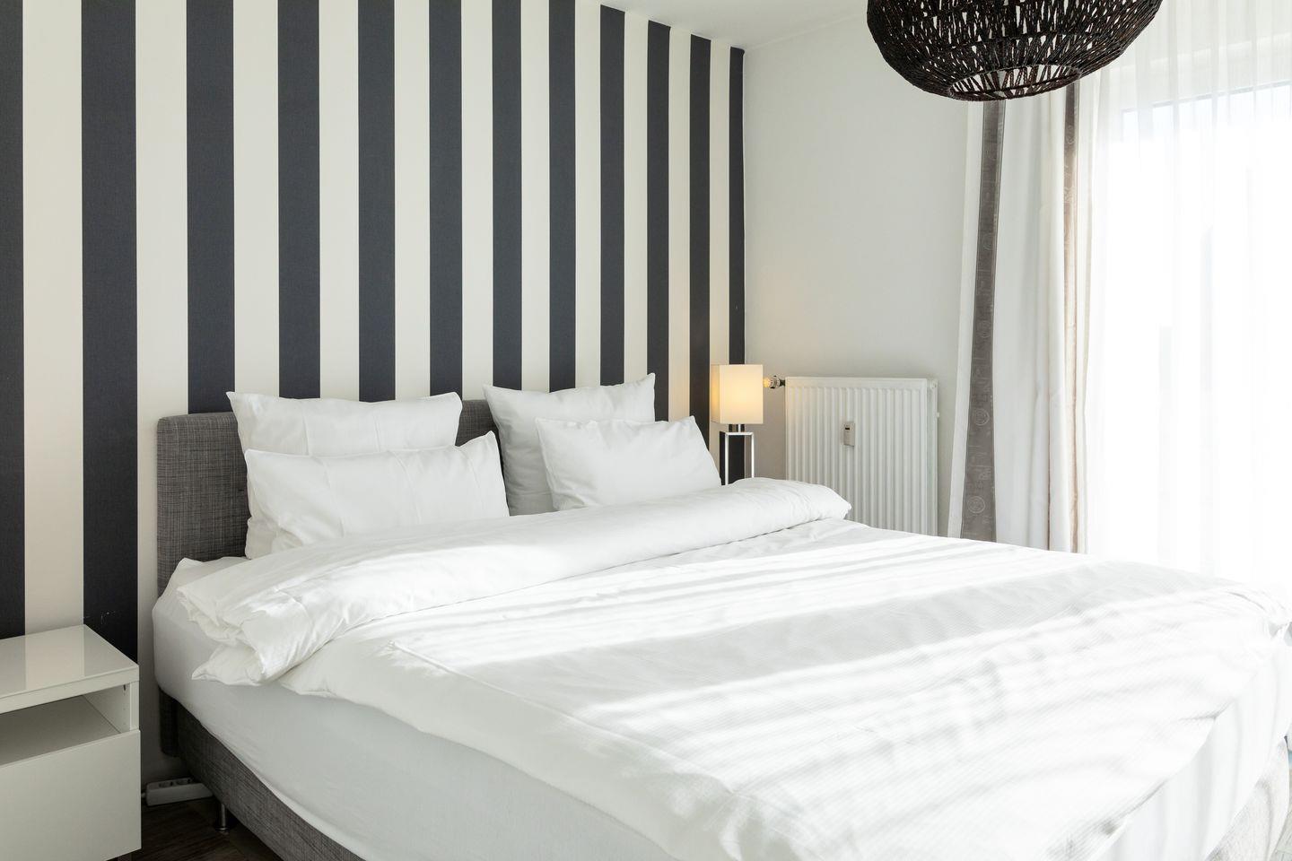 Die Wohnung bietet Platz für bis zu vier Personen und verfügt über ein gemütliches Schlafzimmer mit Boxpringbett, in dem Sie sich nach einem erlebnisreichen Tag entspannen können. Zusätzlich finden Sie im Wohnzimmer eine gemütliche Schlafcouch, die sich perfekt für gesellige Abende oder einen entspannten Filmabend eignet. Der offene Küchenbereich ist komplett ausgestattet und lässt keine Wünsche offen: von einem Herd über eine Mikrowelle bis hin zu einer Kaffeemaschine, um Ihre Morgen mit frisch gebrühtem Kaffee zu beginnen.