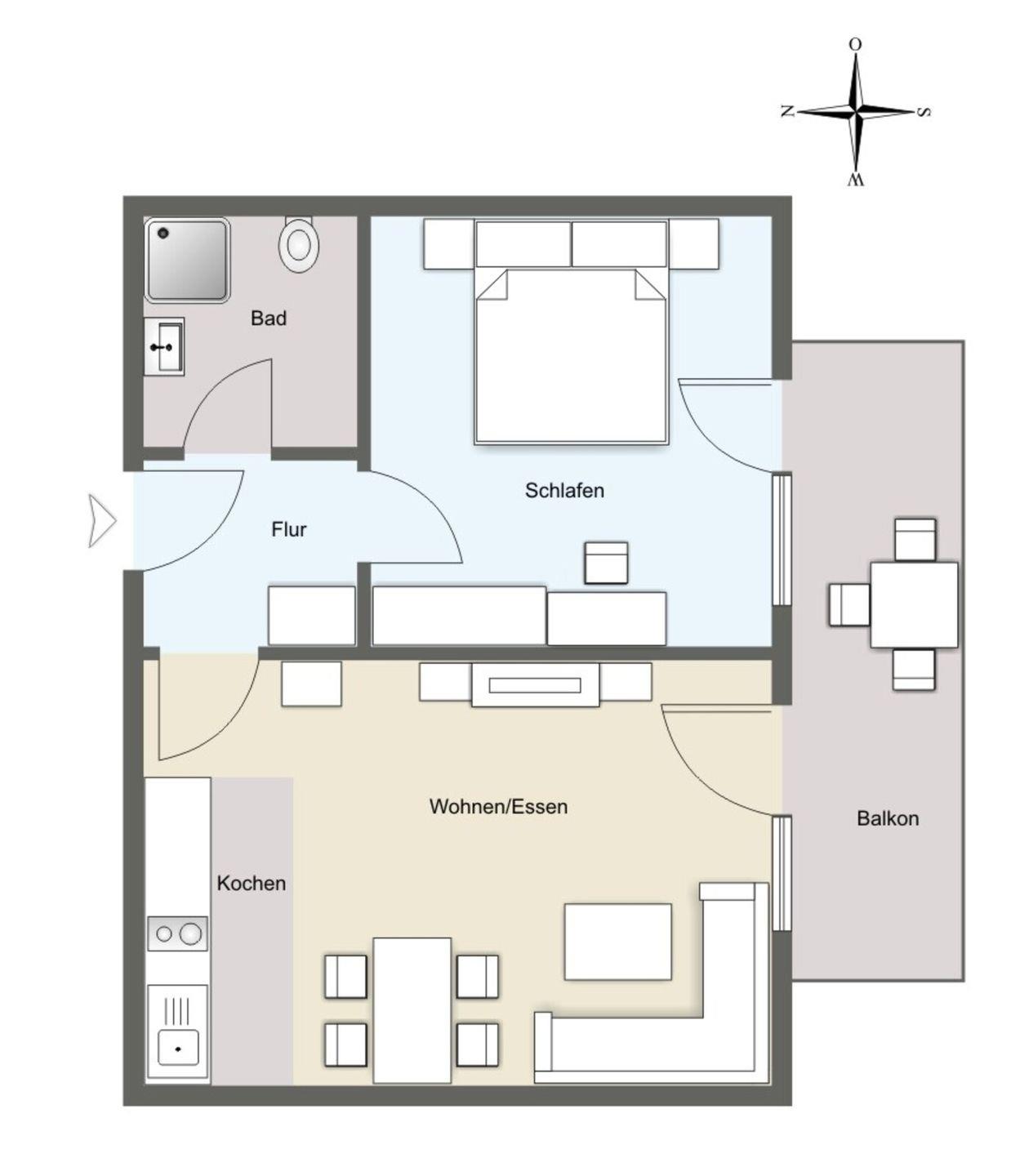 Genießen Sie die Mahlzeiten am Esstisch oder auf dem Balkon mit Gartenblick – der perfekte Ort, um den Tag mit einem Glas Wein ausklingen zu lassen. Die Ferienwohnung bietet zudem ein 2025 frisch renoviertes Badezimmer mit Dusche und Haartrockner.