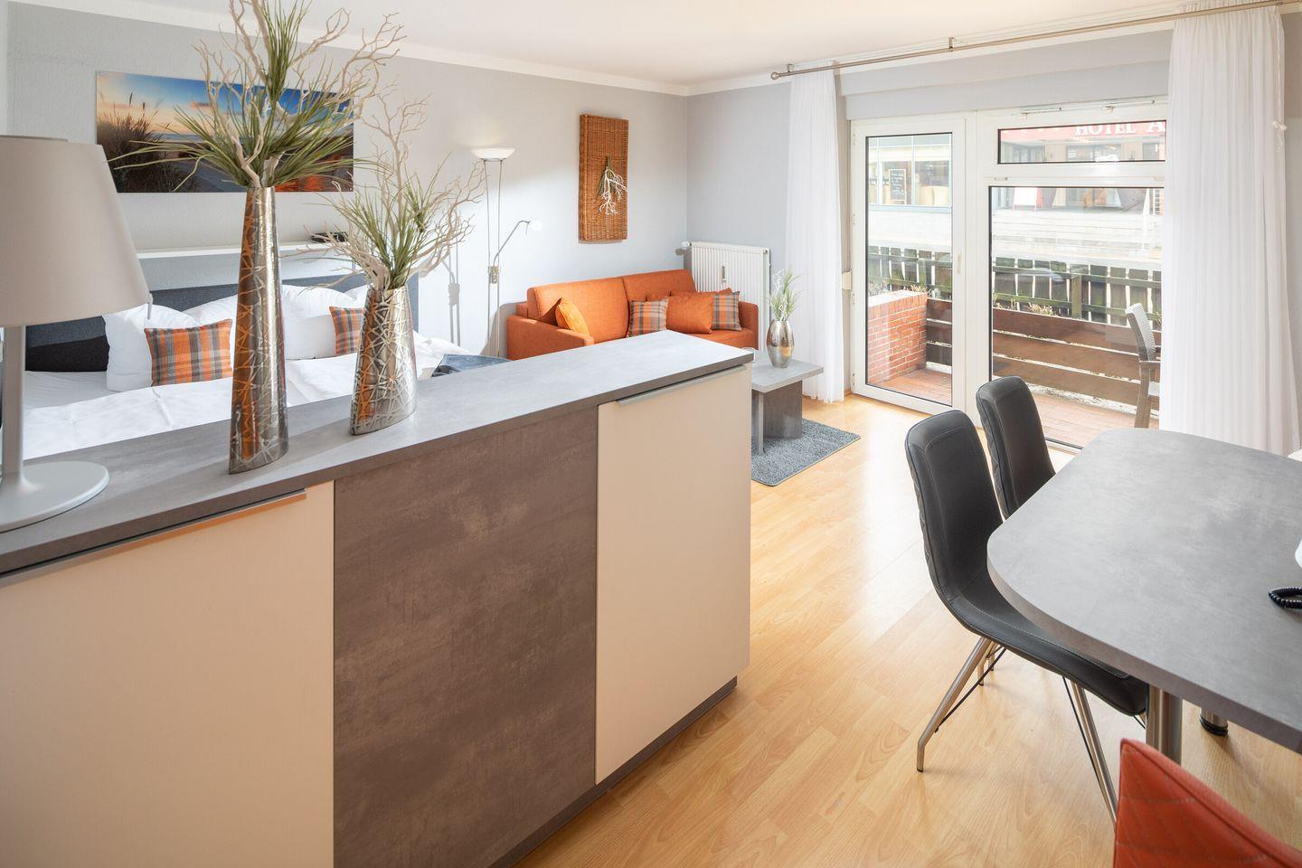 Das 1-Zimmer Appartement „Zentral“ befindet sich im Appartement Haus Bracht auf der idyllischen Insel Juist.