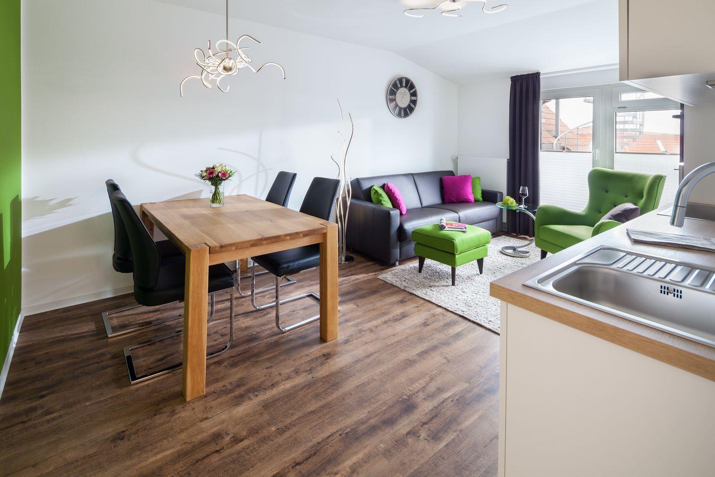 Die Unterkunft bietet Ihnen den idealen Rückzugsort für einen traumhaften Urlaub an der Nordsee. In diesem modernen Appartement mit einer Größe von 45 m² finden bis zu vier Personen ausreichend Platz zum Entspannen und Wohlfühlen. Die Suite verfügt über ein gemütliches Schlafzimmer mit Boxspringbett sowie eine offene Wohnküche in der sich das Schlafsofa mit intergrierter Matratze befindet. Die liebevoll gestalteten Räume sind allergikergeeignet und das Nichtraucher-Ambiente sorgt für ein angenehmes Raumklima.