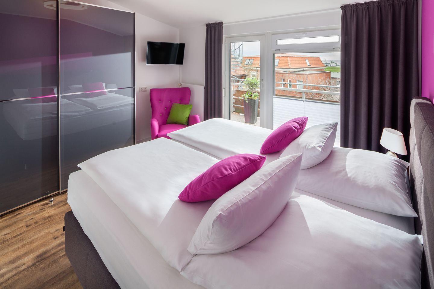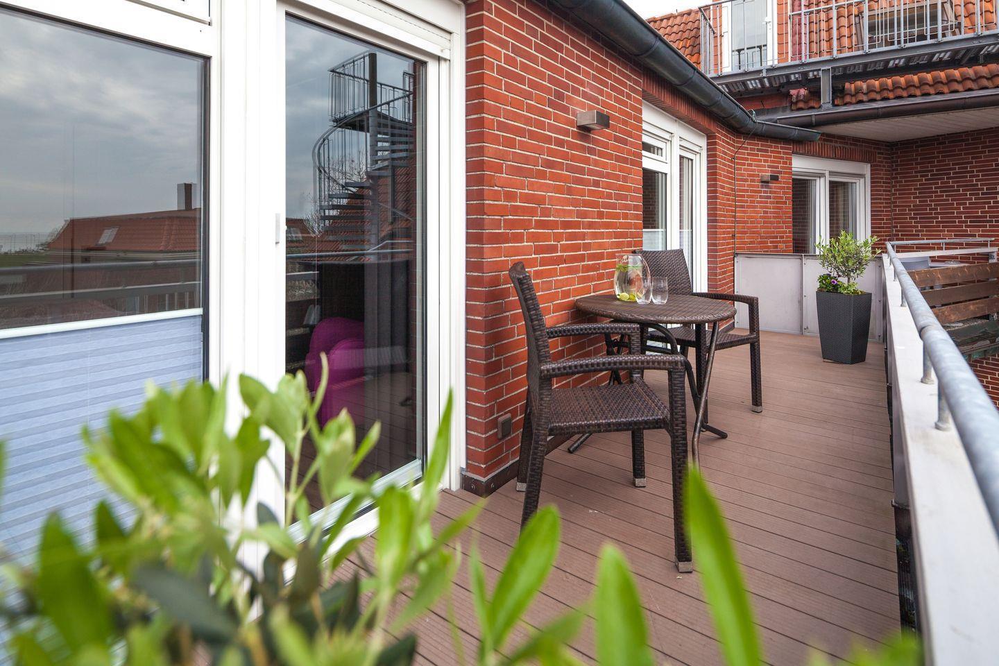 Modernes Appartement mit Boxspringbett, sonnigem Balkon und Blick zum Wattenmeer