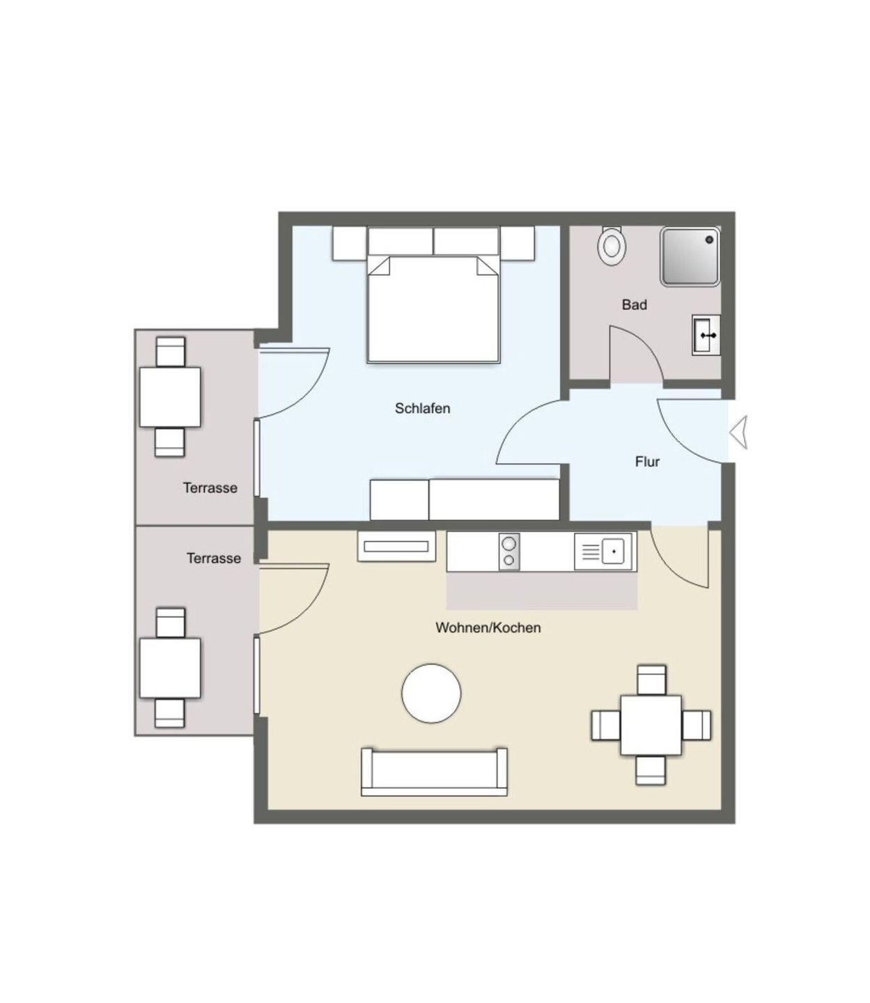 Modernes 2-Zimmer Appartement mit Boxspringbett und Terrasse zum Garten