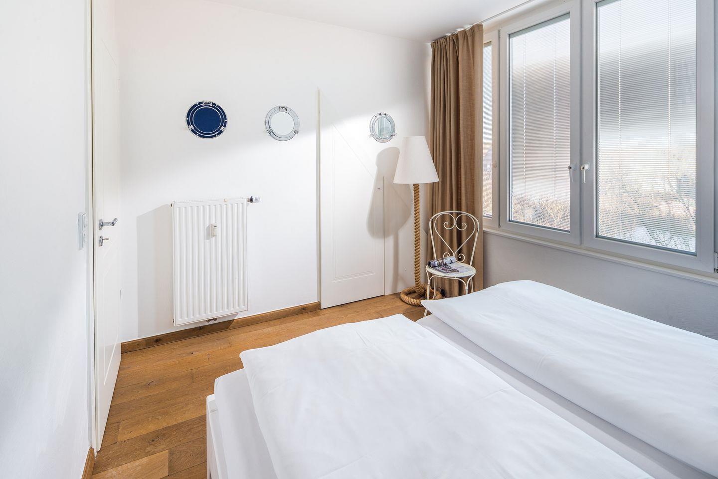 Über die großzügige Treppe erreichen Sie auf der zweiten Ebene das Schlafzimmer (Doppelbett 1,80 x 2,00 m) und das Wohnstudio, dass je nach Belegung als zweites Wohnzimmer oder als Schlafraum (Doppelbett 1,60 x 2,00 m) genutzt werden kann, sowie ein extra WC.