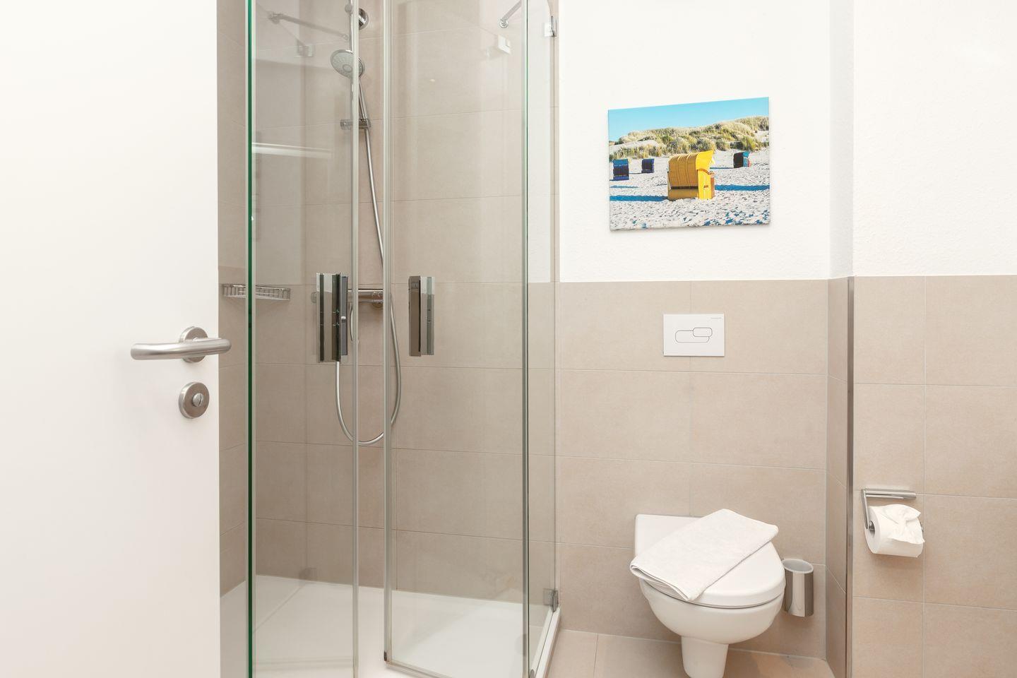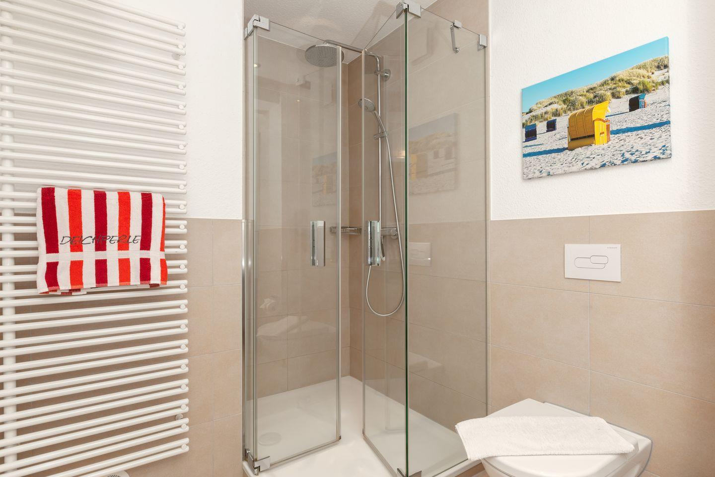 Ein besonderes Highlight der Deichperle ist die exklusive bemberg airSPACE Sauna. Mit innovativer Luftzirkulation für ein angenehmes Saunaerlebnis sorgt sie für maximale Erholung und Regeneration – direkt in Ihrer eigenen Wohlfühloase. Im modernen Badezimmer erwartet Sie eine großzügige Rainshower-Dusche, die jeden Tag mit einem wohltuenden Duschvergnügen abrundet.