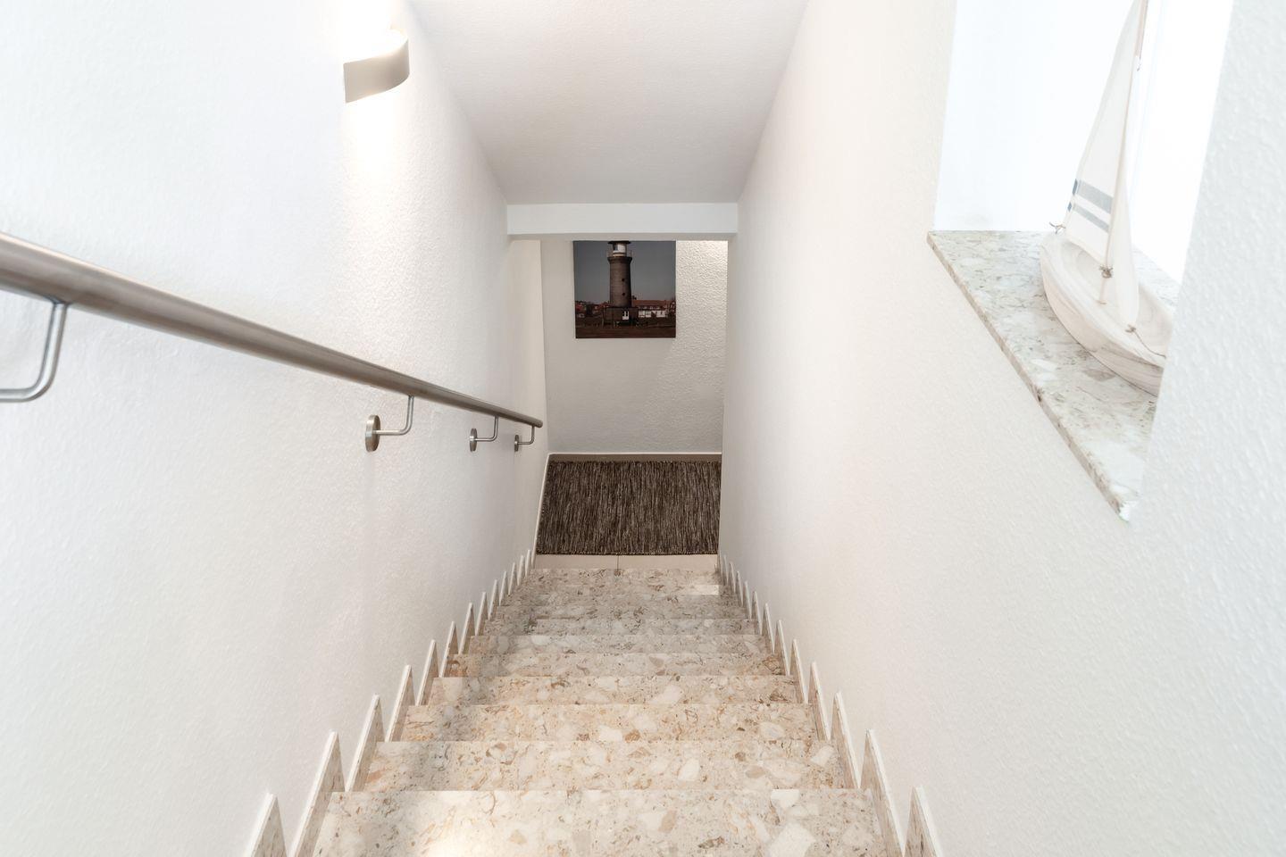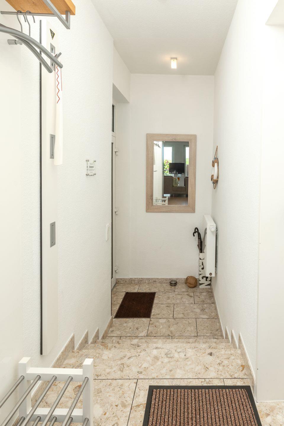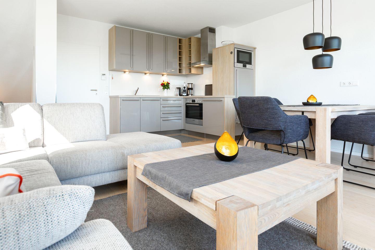 Die großzügige 3-Zimmer-Wohnung erstreckt sich über zwei Etagen und besticht durch ihr lichtdurchflutetes, offenes Wohnkonzept. Die moderne Einbauküche geht fließend in den gemütlichen Wohnbereich über – perfekt für ein entspanntes Frühstück oder einen stimmungsvollen Abend nach einem erlebnisreichen Inseltag. Durch die großen Fenster bietet sich Ihnen ein atemberaubender Blick auf den Hafen und das Leuchtfeuer Memmertfeuer. Und wenn die Nordsee ihr wildes Gesicht zeigt? Dann laden der südlich ausgerichtete Balkon und die Terrasse mit gemütlichem Strandkorb zum geschützten Sonnenbaden ein.