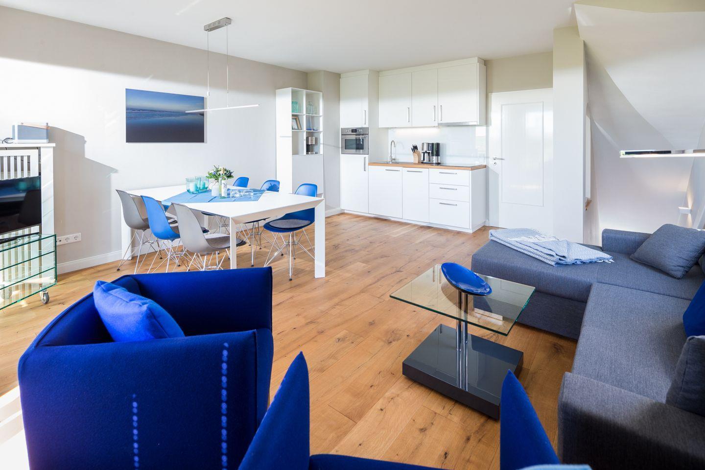 Unsere moderne und komfortabel ausgestattete Ferienwohnungen Deichknutt-Watt in herrlicher und zentraler Lage bietet uneingeschränkte Privatsphäre über 2 Ebenen.
