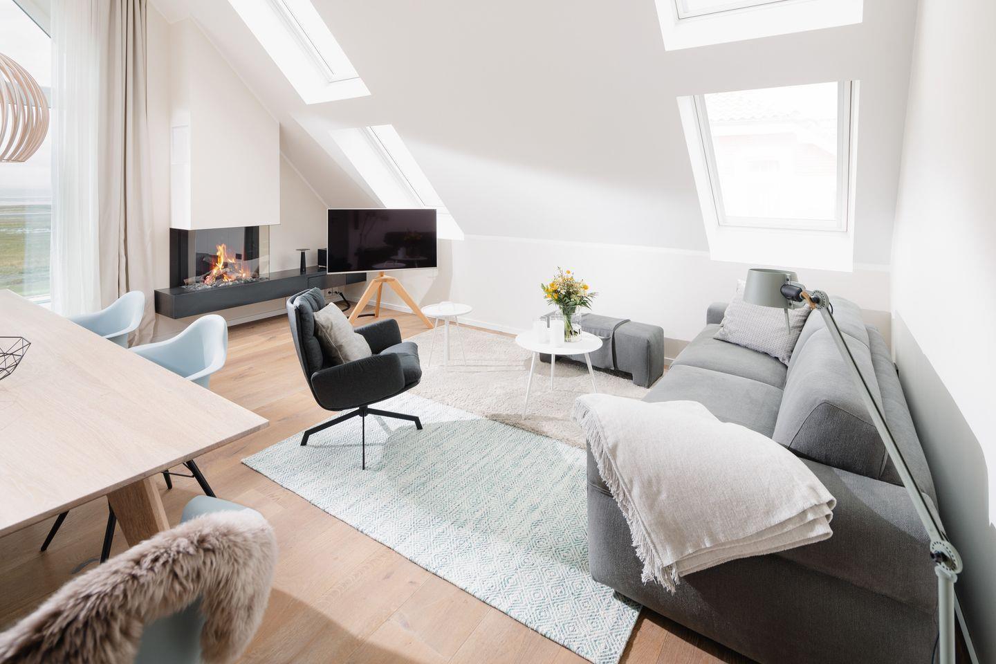 Ein schickes Penthouse begrüßt Sie in Toplage, nah zum Ortskern und noch näher zu den Salzwiesen und dem Wattenmeer. Helle, luftige Räume mit Panoramafenstern geben einen atemberaubenden Blick über die Wiesen und das Meer bis hin zum Hafen frei. Auf der Panorama-Terrasse in Richtung Süden werden sie viele Stunden diesen einzigartigen Blick genießen.