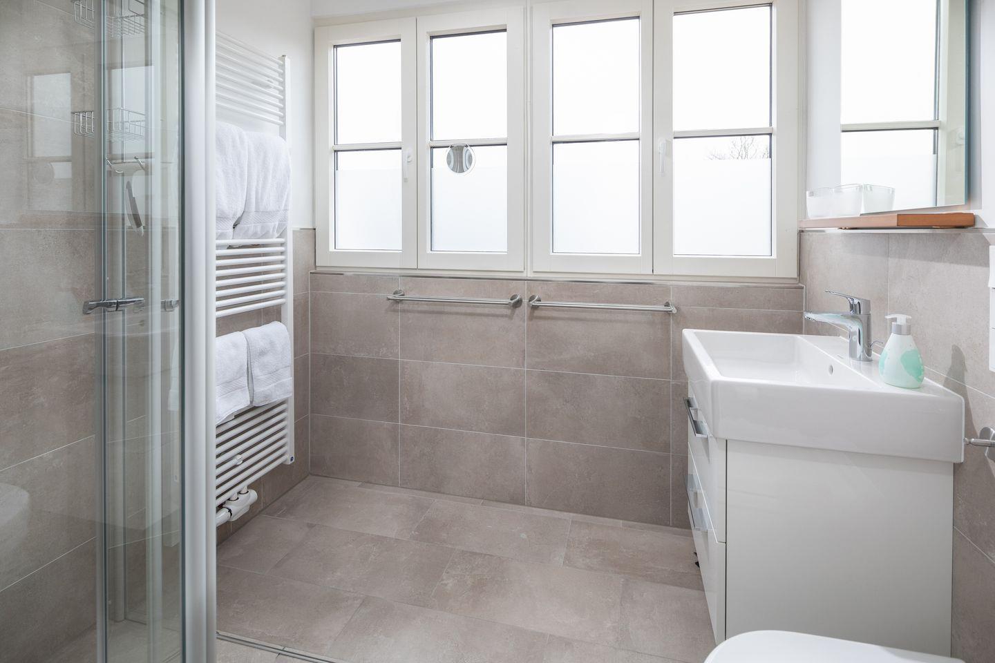 Zur Ausstattung gehören neben einem offenen Wohn-Ess-Bereich mit großem Flachbildschirm TV, einem komfortablen Küchenblock (Spülmaschine, Backofen, Ceran-Kochfeld, Nespresso- und Kaffeemaschine, u. v. m.), ein modernes Bad mit Dusche sowie zwei separate Schlafräume (1 Boxspringbett, 160 x 200 und eine ausziehbare Schlafcouch, 140 x 200) mit Platz für 2 – 4 Personen. Eine Waschmaschine mit integriertem Trockner, Bügeleisen und -brett stehen zur Verfügung.
