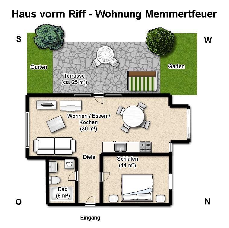 Genießen Sie wunderschöne Ferien in unserer hübschen, im Grünen gelegenen Ferienwohnung "Memmertfeuer" im "Haus vorm Riff". Wir freuen uns auf Sie!
