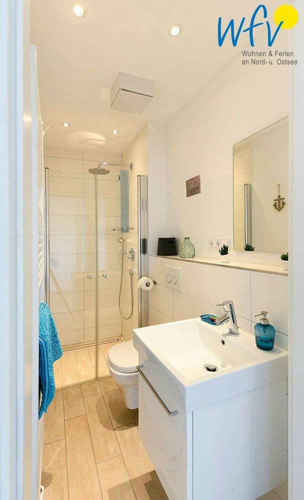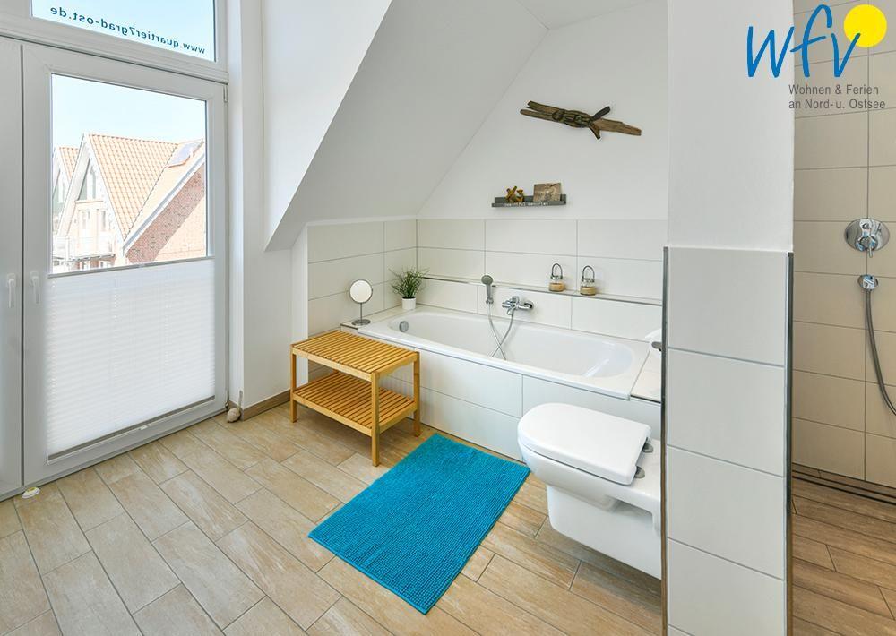 Zwei Badezimmer garantieren Ihnen angenehme Ausweichmöglichkeiten. Das große Bad verfügt über Dusche und Badewanne; Fußbodenheizung und Handtuchheizung bieten zusätzlichen Komfort. Im Gäste-WC befindet sich ebenfalls eine Dusche.
