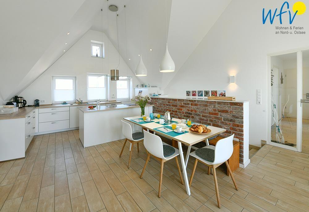 Die exklusive Ferienwohnung besitzt in vielerlei Hinsicht hohen Wohnkomfort - wie freies WLAN, Fußbodenheizung und eine kindgerechte Ausstattung. Modernes Mobiliar, helle Farben und große Fenster verleihen ihr eine freundliche und einladende Atmosphäre.
