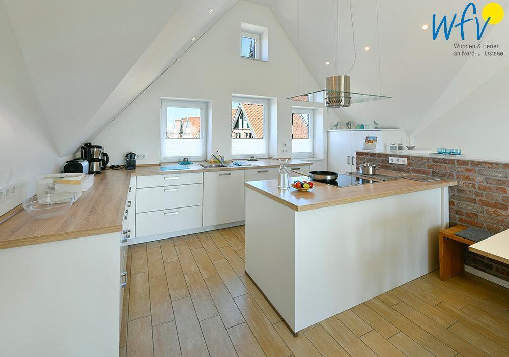 Die Juister Ferienwohnung erstreckt sich über zwei Etagen und bietet somit eine sehr vorteilhafte Raumaufteilung. In der ersten Etage befindet sich ein großzügiger Wohnraum mit angrenzender Küche und Essbereich, ein separates Schlafzimmer, zwei Badezimmer, ein Abstellraum, zwei Garderoben und ein Balkon. Im Dachgeschoss erwartet Sie ein weiterer separater Schlafraum mit vier Stapelbetten.