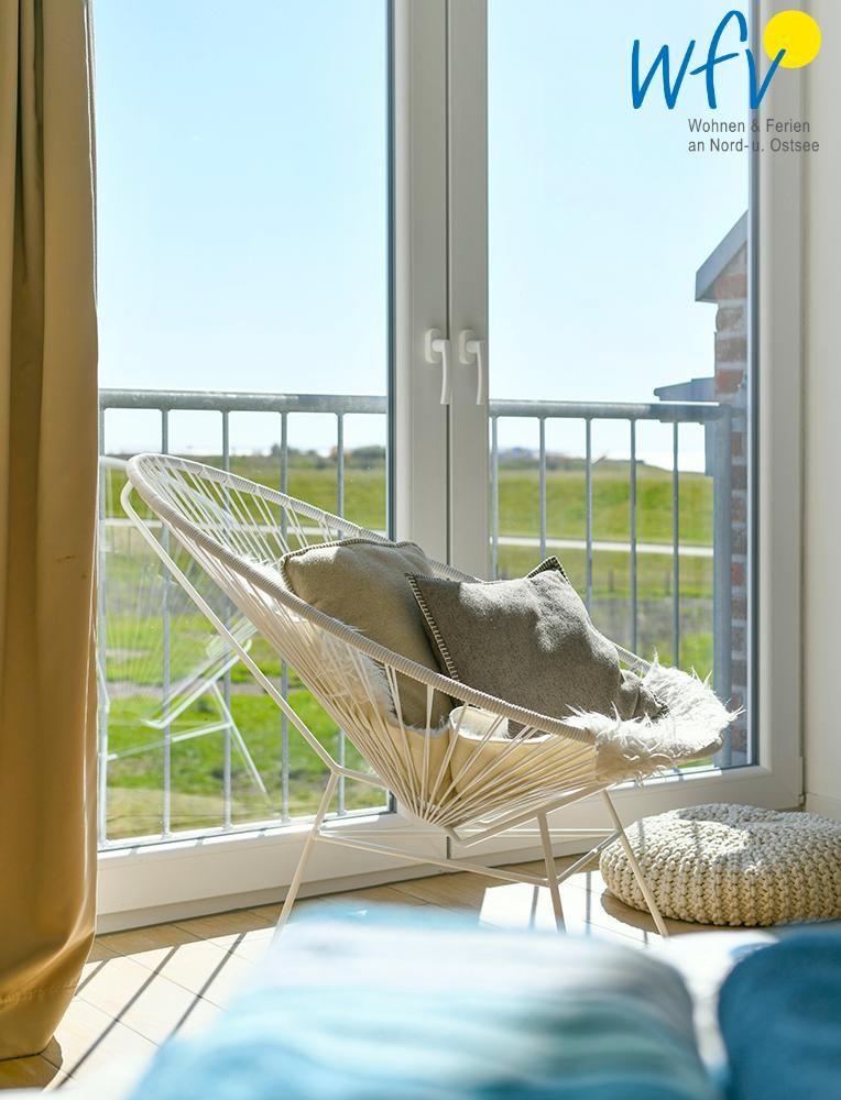 Auf dem herrlichen Balkon wartet bereits ein eigener Strandkorb auf Sie! Hier gemütlich ein gutes Buch zu lesen oder sich von der Sonne wärmen zu lassen, ist pure Erholung. Und auch die Aussicht lässt Sie unvergessliche Urlaubsmomente erleben: Vom Balkon aus haben Sie einen freien Blick auf die Nordsee bis hin zur ostfriesischen Küste.