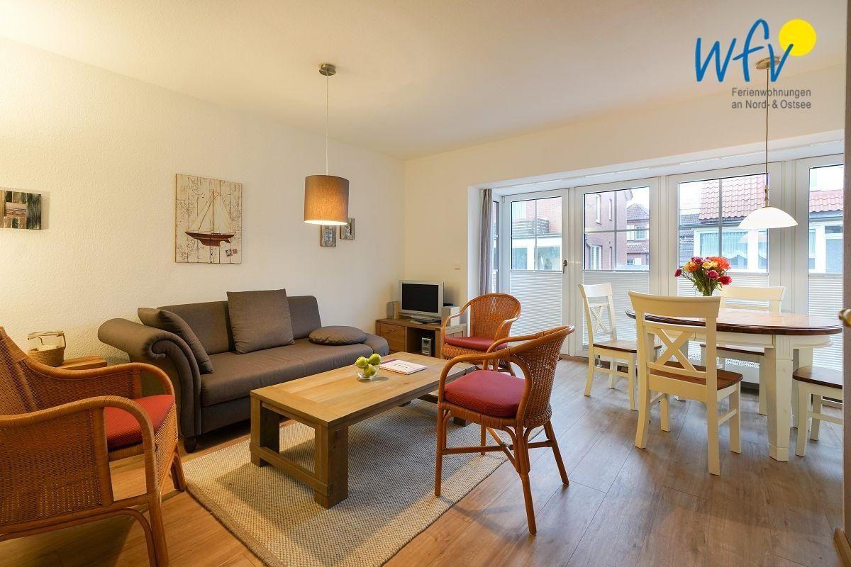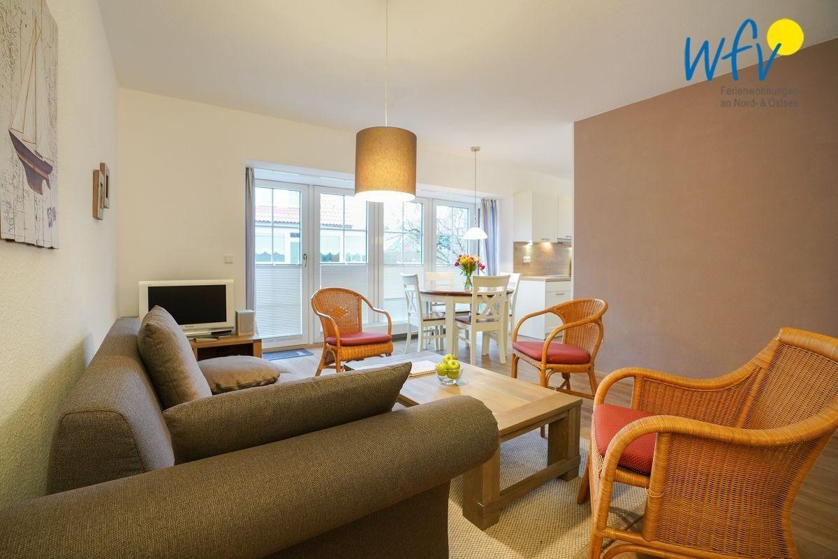 Helle Räume und eine liebevolle Einrichtung machen die Wohnung zu einem sehr gemütlichen Zuhause für Ihre Ferienzeit auf Juist. Ob beim Ferienfrühstück am runden Esstisch oder beim Entspannen in der gemütlichen Couchecke mit TV (Kabel-TV) - bei uns werden Sie sich rundum erholen!