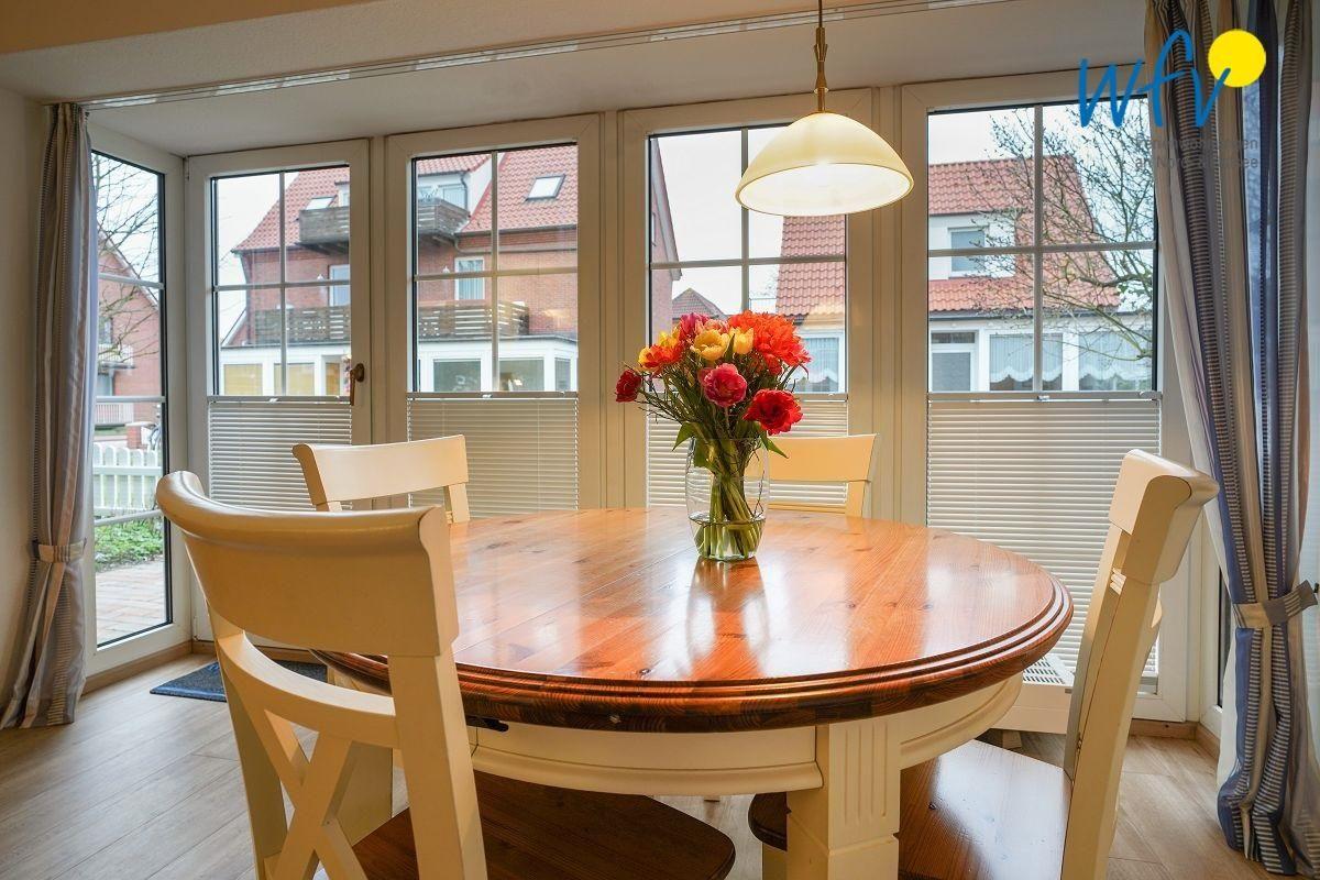Vom Frühstückstisch aus haben Sie einen direkten Blick auf die schöne Terrasse der Ferienwohnung. Da bekommt man gleich Lust, den Tag an der frischen Nordseeluft zu verbringen…