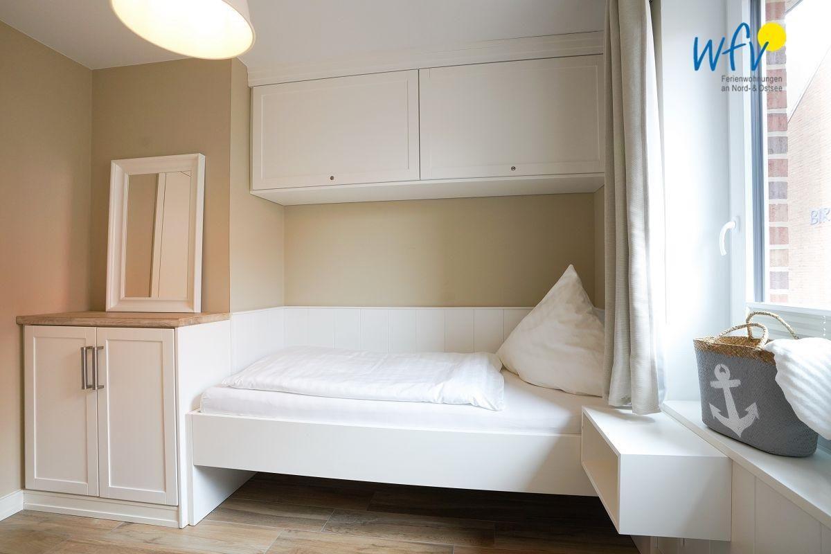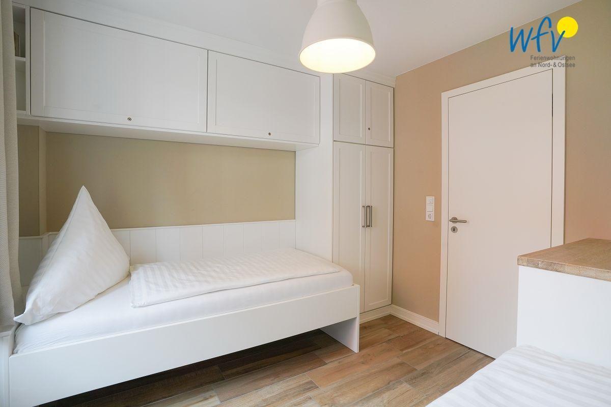In einem der zwei separaten Schlafzimmer befindet sich ein gemütliches Doppelbett (180 cm x 200 cm) und ein weiteres TV. Das andere Zimmer ist mit zwei Einzelbetten eingerichtet (je 90 cm x 200 cm). Ein Rausfallschutz für Kinder gehört zum festen Inventar der Wohnung.