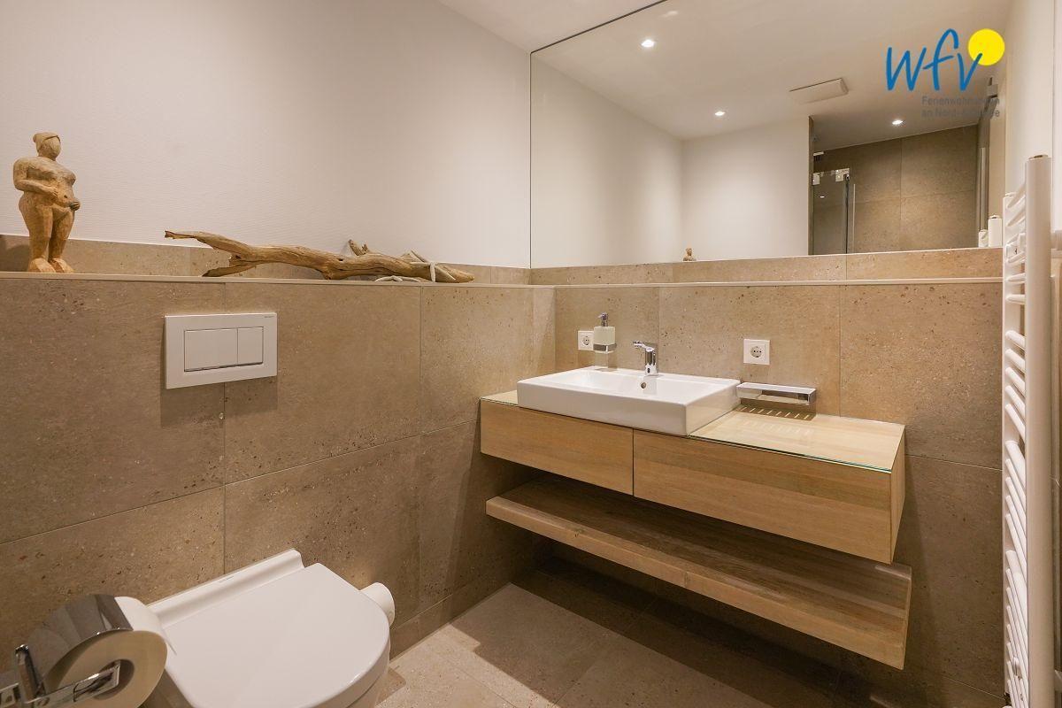 Wohnkomfort erwartet Sie auch im Badezimmer der Wohnung! Eine stilvolle Ausstattung sowie eine verwöhnende Regendusche sorgen für komfortables Wohngefühl.